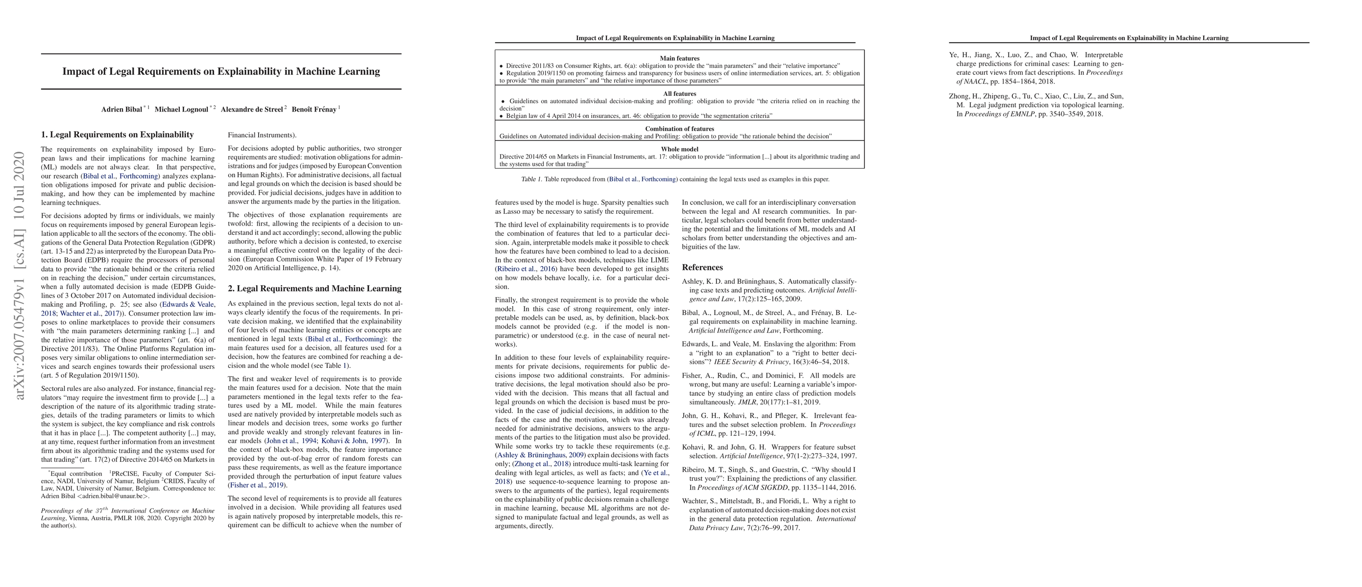 The paper categorizes and analyzes legal requirements for explainability in machine learning, providing a framework for implementation using ML techniques.