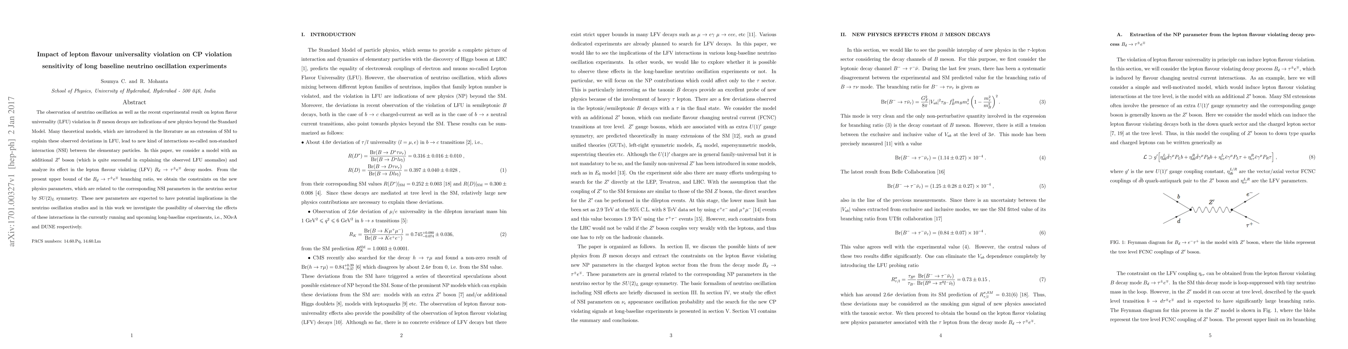 This paper investigates how new physics beyond the Standard Model, indicated by lepton flavor universality violation, could affect CP violation sensitivity in long-baseline neutrino oscillation experiments. It focuses on a model with an additional $Z'$ boson and explores its implications for neutrino oscillation studies, particularly in the context of current and future experiments like NOvA and DUNE.