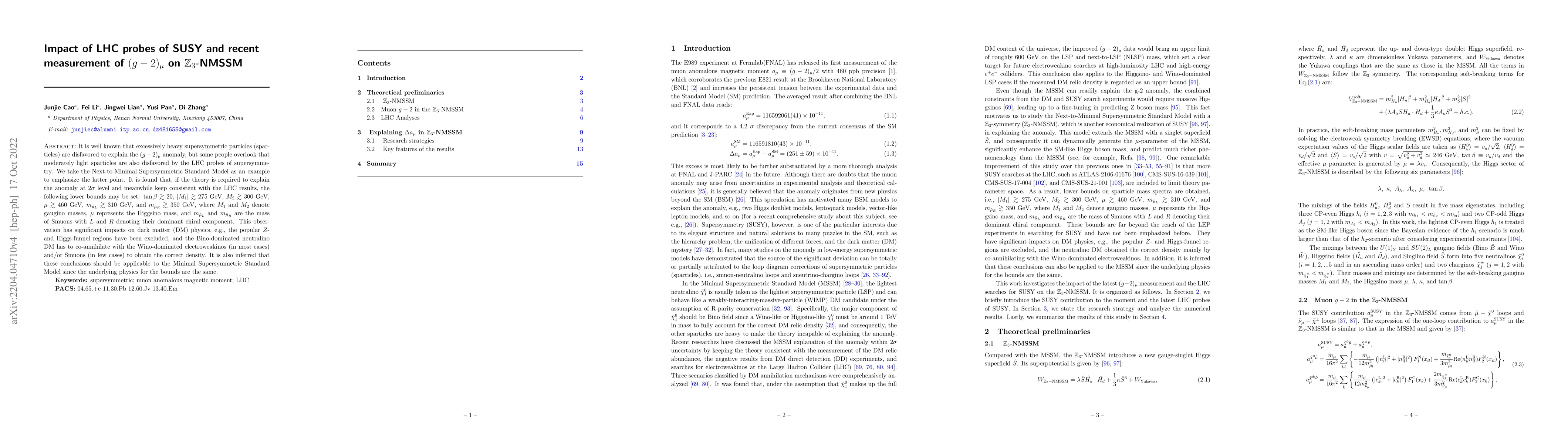 It is well known that excessively heavy supersymmetric particles (sparticles) are disfavored to explain the $(g-2)_\mu$ anomaly, but some people overlook that moderately light sparticles are also disfavored by the LHC probes of supersymmetry. We take the Next-to-Minimal Supersymmetric Standard Model as an example to emphasize the latter point. It is found that, if the theory is required to explain the anomaly at $2\sigma$ level and meanwhile keep consistent with the LHC results, the following lower bounds may be set: $\tan \beta \gtrsim 20$, $|M_1| \gtrsim 275~{\rm GeV}$, $M_2 \gtrsim 300~{\rm GeV}$, $\mu \gtrsim 460~{\rm GeV}$, $m_{\tilde{\mu}_L} \gtrsim 310~{\rm GeV}$, and $m_{\tilde{\mu}_R} \gtrsim 350~{\rm GeV}$, where $M_1$ and $M_2$ denote gaugino masses, $\mu$ represents the Higgsino mass, and $m_{\tilde{\mu}_L}$ and $m_{\tilde{\mu}_R}$ are the mass of Smuons with $L$ and $R$ denoting their dominant chiral component. This observation has significant impacts on dark matter (DM) physics, e.g., the popular $Z$- and Higgs-funnel regions have been excluded, and the Bino-dominated neutralino DM has to co-annihilate with the Wino-dominated electroweakinos (in most cases) and/or Smuons (in few cases) to obtain the correct density. It is also inferred that these conclusions should apply to the Minimal Supersymmetric Standard Model since the underlying physics for the bounds are the same.