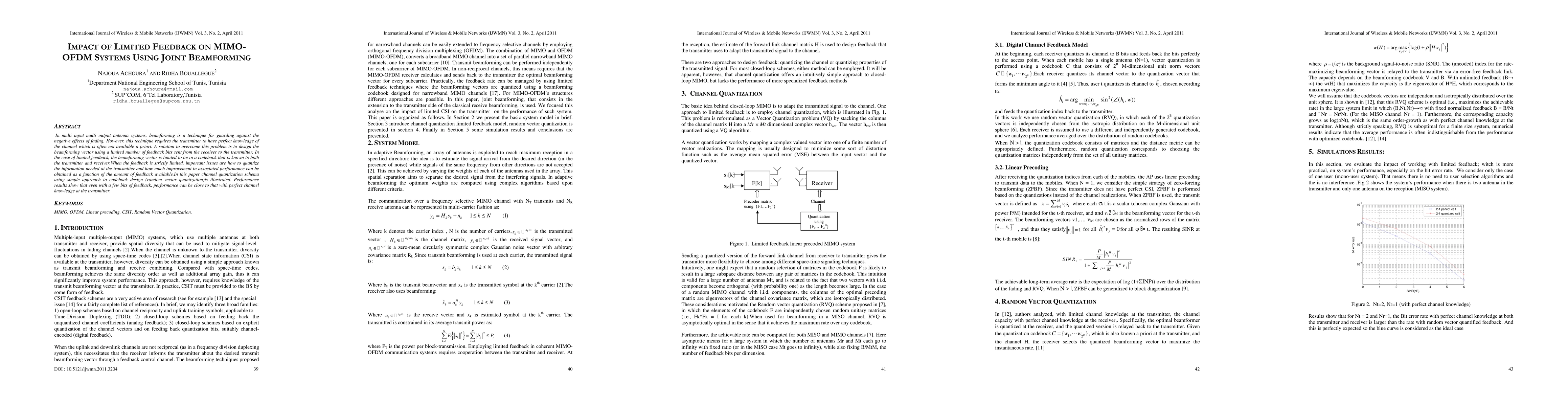 Limited feedback can achieve similar performance to perfect channel knowledge in MIMO-OFDM systems through efficient codebook design and quantization schemes, enabling significant improvements with minimal bits of feedback.