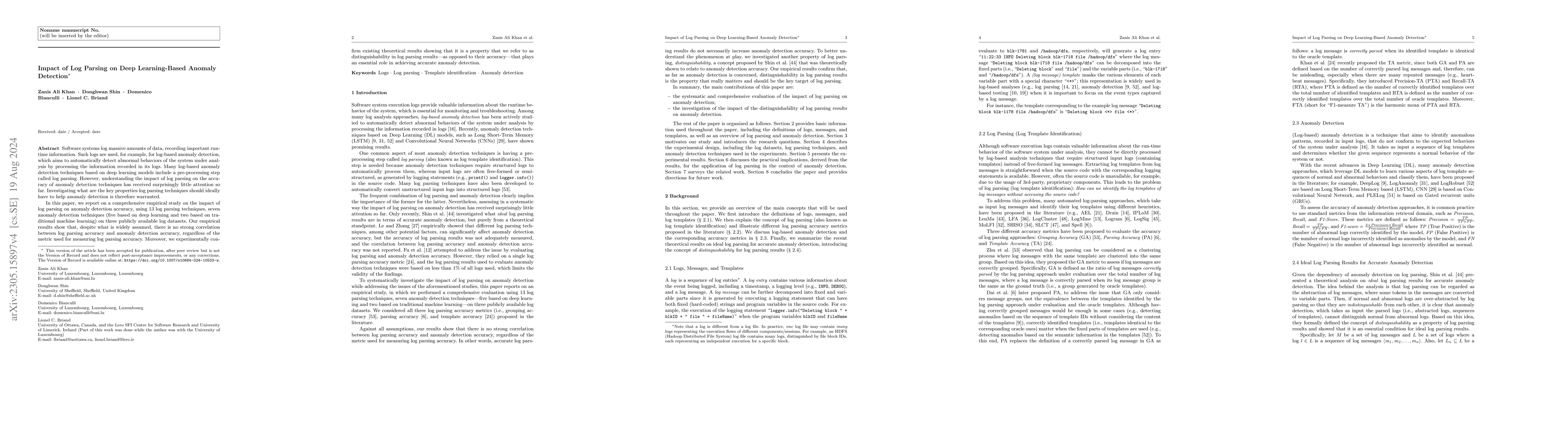 This paper investigates the impact of log parsing on log-based anomaly detection, finding no strong correlation between parsing accuracy and detection accuracy. It highlights that distinguishability in log parsing results, rather than parsing accuracy, is crucial for effective anomaly detection.