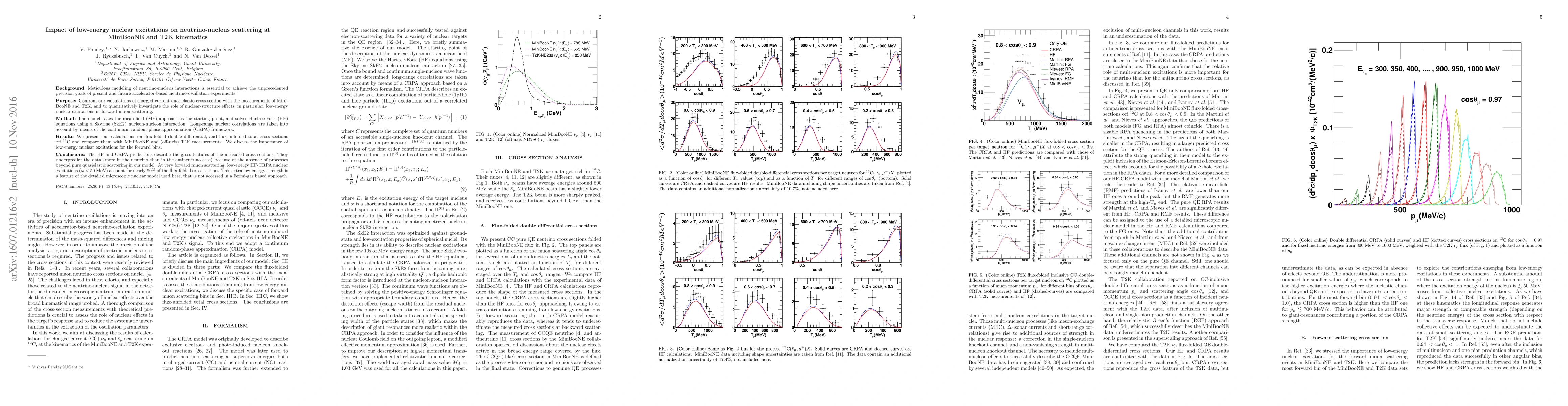 This research investigates the impact of low-energy nuclear excitations on neutrino-nucleus scattering at MiniBooNE and T2K kinematics, using a mean-field approach and CRPA framework. The study finds that low-energy nuclear excitations account for nearly 50% of the flux-folded cross section in the forward scattering bins, highlighting their significant role in neutrino interactions.