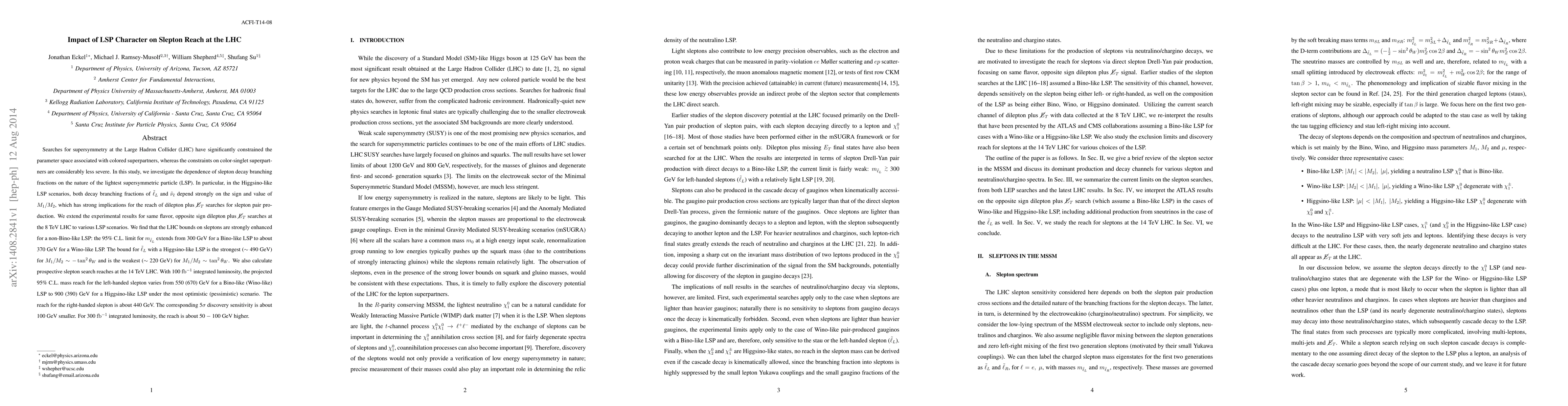 Searches for supersymmetry at the Large Hadron Collider (LHC) have significantly constrained the parameter space associated with colored superpartners, whereas the constraints on color-singlet superpartners are considerably less severe. In this study, we investigate the dependence of slepton decay branching fractions on the nature of the lightest supersymmetric particle (LSP). In particular, in the Higgsino-like LSP scenarios, both decay branching fractions of $\tilde\ell_L$ and $\tilde\nu_\ell$ depend strongly on the sign and value of $M_1/M_2$, which has strong implications for the reach of dilepton plus MET searches for slepton pair production. We extend the experimental results for same flavor, opposite sign dilepton plus MET searches at the 8 TeV LHC to various LSP scenarios. We find that the LHC bounds on sleptons are strongly enhanced for a non-Bino-like LSP: the 95% C.L. limit for $m_{\tilde\ell_L}$ extends from 300 GeV for a Bino-like LSP to about 370 GeV for a Wino-like LSP. The bound for $\tilde\ell_L$ with a Higgsino-like LSP is the strongest (~ 490 GeV) for $M_1/M_2$ ~ $-\tan^2\theta_W$ and is the weakest (~ 220 GeV) for $M_1/M_2$ ~ $\tan^2\theta_W$. We also calculate prospective slepton search reaches at the 14 TeV LHC. With 100 fb$^{-1}$ integrated luminosity, the projected 95% C.L. mass reach for the left-handed slepton varies from 550 (670) GeV for a Bino-like (Wino-like) LSP to 900 (390) GeV for a Higgsino-like LSP under the most optimistic (pessimistic) scenario. The reach for the right-handed slepton is about 440 GeV. The corresponding 5$\sigma$ discovery sensitivity is about 100 GeV smaller. For 300 fb$^{-1}$ integrated luminosity, the reach is about 50 - 100 GeV higher.