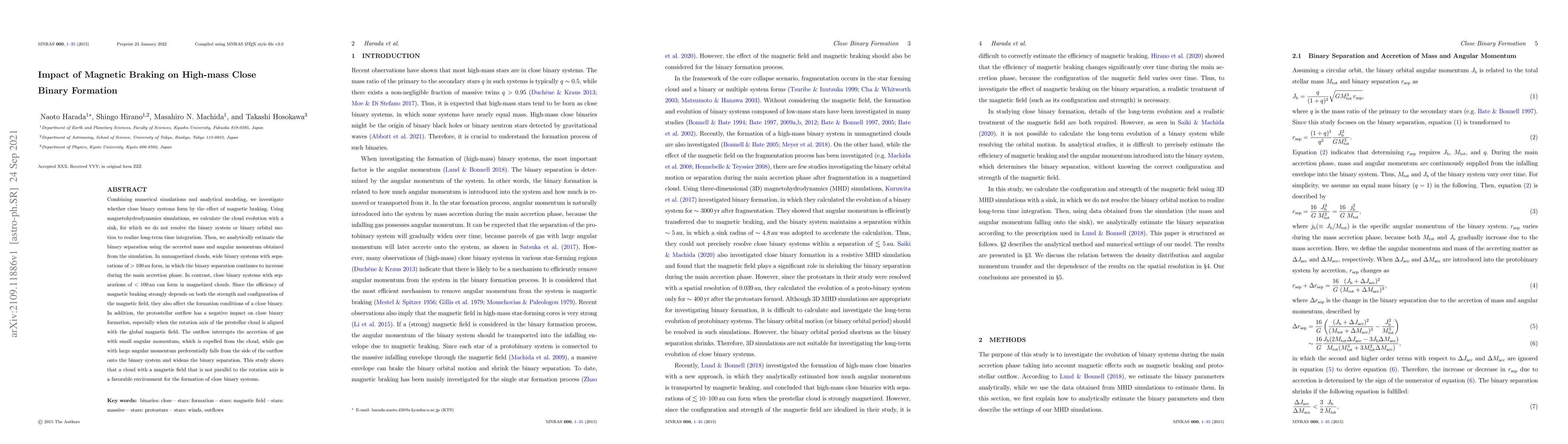 This study combines numerical simulations and analytical modeling to explore how magnetic braking influences the formation of high-mass close binary systems. It finds that magnetized clouds favor the formation of close binaries (<100 au), while unmagnetized clouds tend to form wider binaries (>100 au).