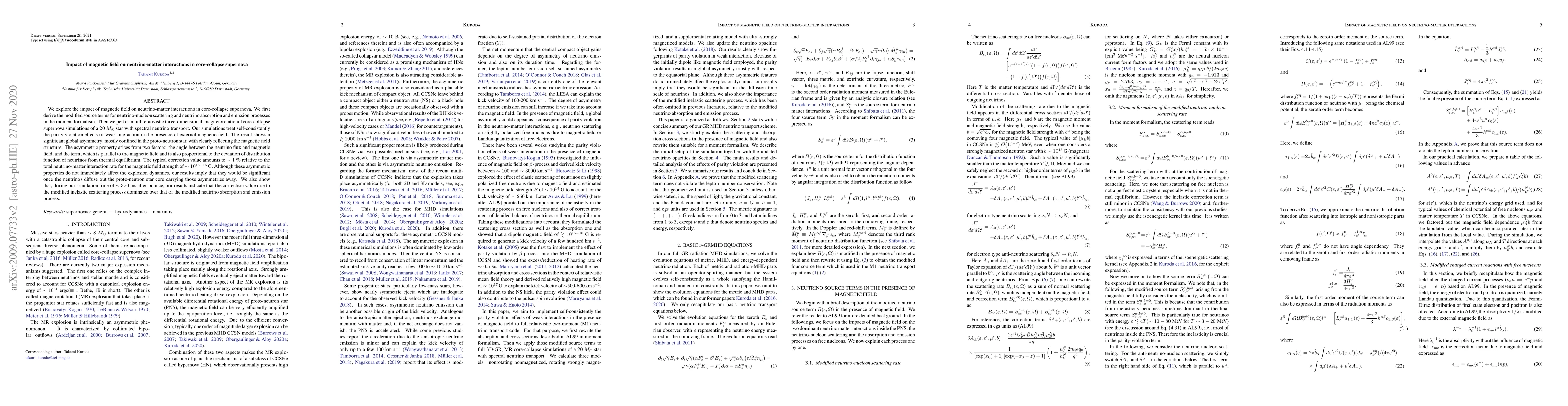 This study investigates how magnetic fields influence neutrino interactions in core-collapse supernovae, revealing significant global asymmetries in neutrino-matter interactions primarily within the proto-neutron star. The results suggest that these asymmetries, driven by the angle between neutrino flux and magnetic field, and deviations from thermal equilibrium, are important for understanding long-term neutrino dynamics and transport.