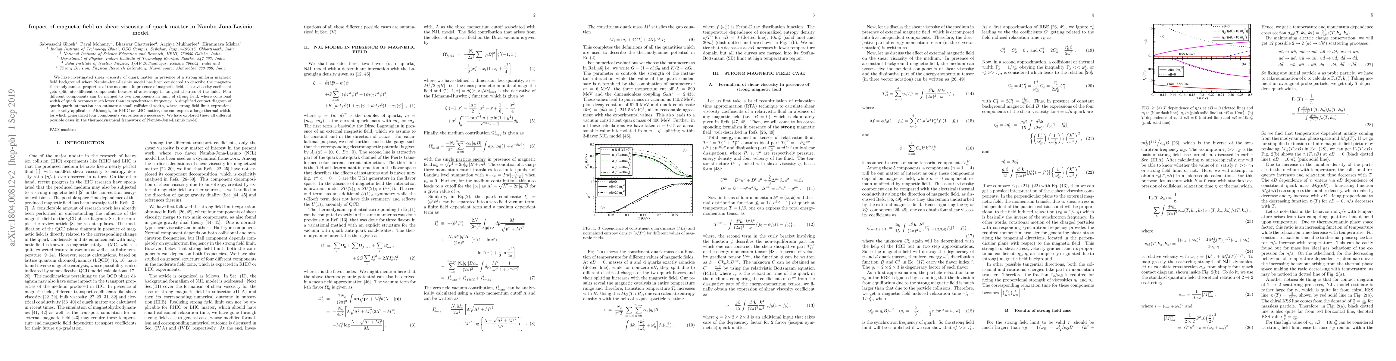 We have investigated shear viscosity of quark matter in presence of a strong uniform magnetic field background where Nambu-Jona-Lasinio model has been considered to describe the magneto-thermodynamical properties of the medium. In presence of magnetic field, shear viscosity coefficient gets split into different components because of anisotropy in tangential stress of the fluid. Four different components can be merged to two components in limit of strong field, where collisional width of quark becomes much lower than its synchrotron frequency. A simplified contact diagram of quark-quark interaction can estimate a small collisional width, where strong field limit expressions are exactly applicable. Although, for RHIC or LHC matter, one can expect a large thermal width, for which generalized four components viscosities are necessary. We have explored these all different possible cases in the thermodynamical framework of Nambu-Jona-Lasinio model.