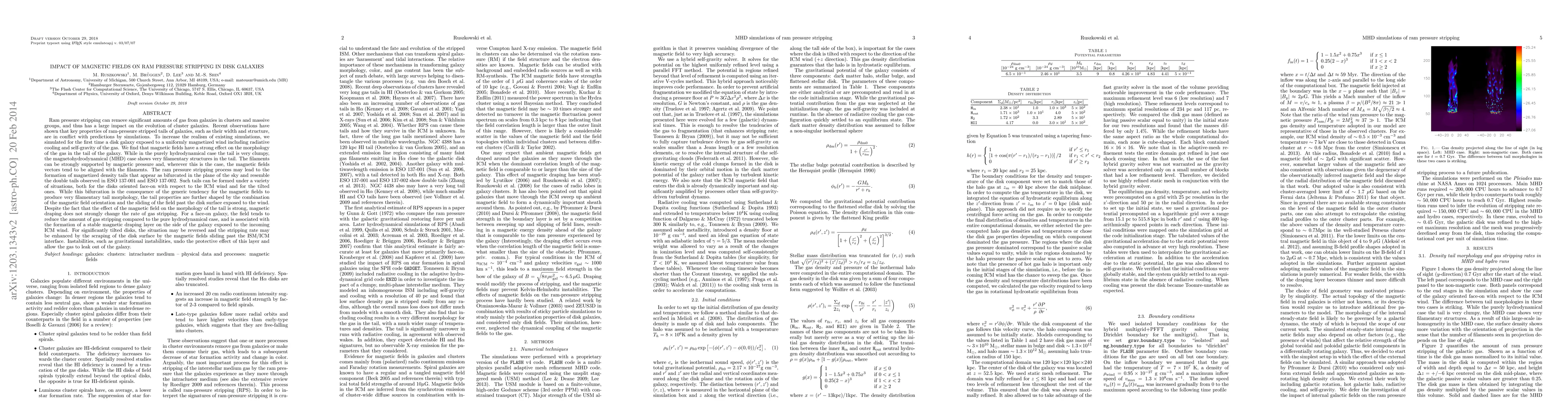 This study investigates how magnetic fields influence ram pressure stripping in disk galaxies, finding that magnetic fields significantly alter the morphology of stripped gas tails, leading to filamentary structures supported by magnetic pressure. The presence of magnetic fields can result in bifurcated tails resembling observed double tails, with the degree of stripping affected by the orientation of the magnetic field relative to the galaxy.