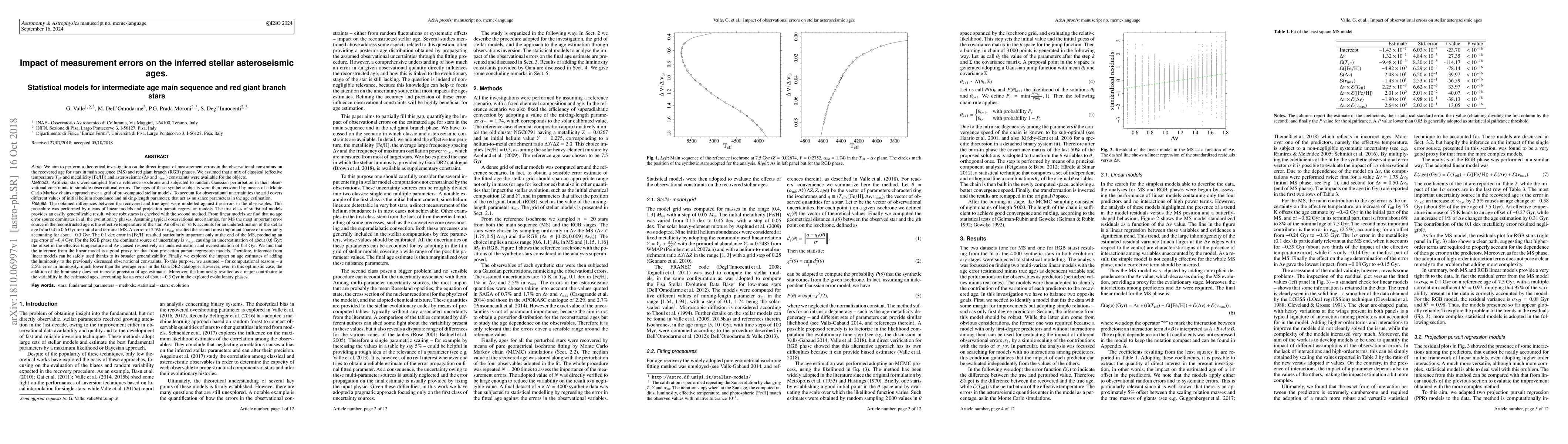 We theoretically quantify the impact of observational errors on the recovered age for stars in MS and RGB phases. We adopted Teff, [Fe/H], Delta_nu and nu_max as observational constraints. Artificial stars were sampled from a reference isochrone and subjected to random perturbation to simulate observational errors. Their ages were then recovered by means of a MCMC approach. The differences between the recovered and true ages were modelled against the errors in the observables by means of linear models and projection pursuit regression models. From linear models we find that no age error source dominates. For MS the most important error source is Teff. An offset of 75 K accounts for an underestimation of the stellar age from 0.4 to 0.6 Gyr for initial and terminal MS. An error of 2.5% in nu_max accounted for about -0.3 Gyr. A 0.1 dex error in [Fe/H] resulted particularly important only at the end of the MS, with an age error of -0.4 Gyr. For the RGB phase the dominant source of uncertainty is nu_max, causing an underestimation of about 0.6 Gyr; the offset in the effective temperature and Delta_nu caused respectively an underestimation and overestimation of 0.3 Gyr. We find that the inference from the linear model is a good proxy for that from projection pursuit regression models, so that linear models can be safely used thanks to its broader generalizability. Finally, we explored the impact on age estimates of adding the luminosity to the other observational constraints. We assumed - for computational reasons - a 2.5% error in luminosity, much lower than the average error in the Gaia DR2 catalogue. Even in this optimistic case, the luminosity does not increase precision of age estimates. Moreover, the luminosity resulted as a major contributor to the variability in the estimated ages, accounting for an error of about -0.3 Gyr in the explored evolutionary phases.