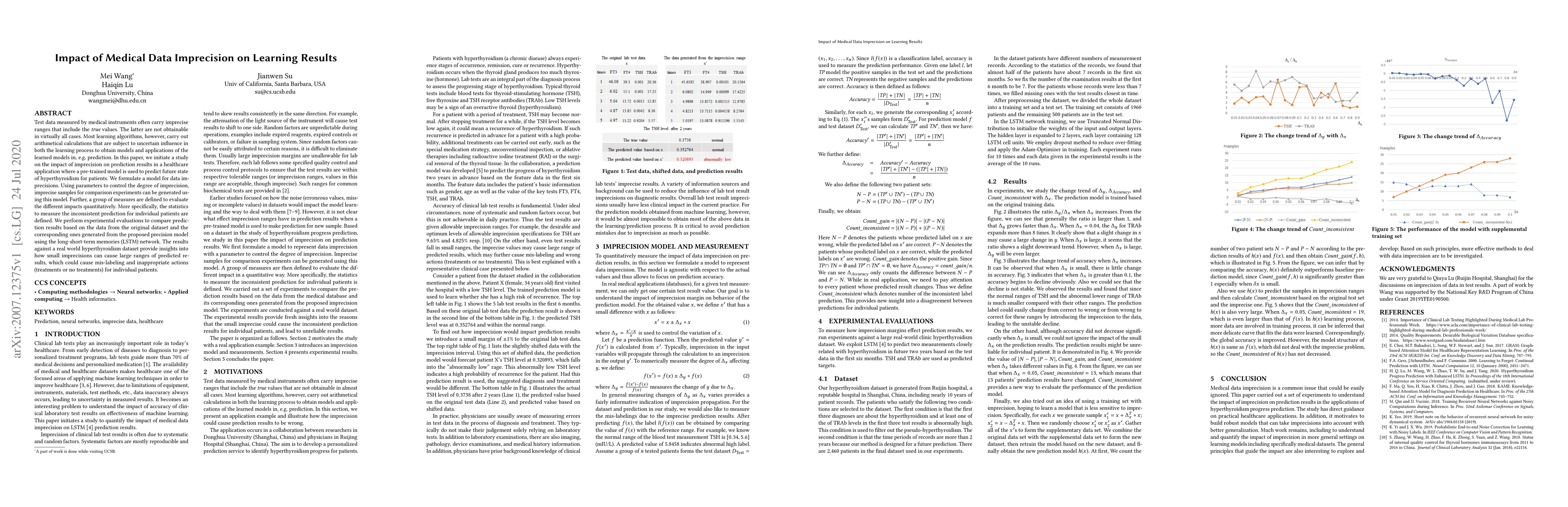 This paper explores how medical data imprecision affects prediction models, specifically for hyperthyroidism. Using an LSTM network, the study demonstrates that small imprecisions can lead to significant variations in predictions, potentially causing incorrect treatment decisions for patients.