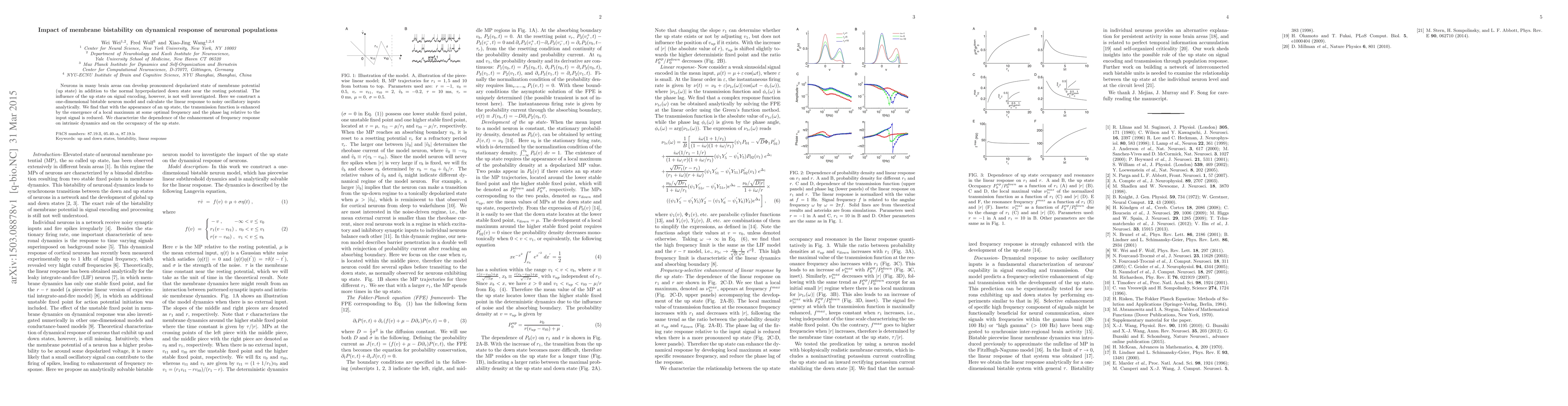 Neurons in many brain areas can develop pronounced depolarized state of membrane potential (up state) in addition to the normal hyperpolarized down state near the resting potential. The influence of the up state on signal encoding, however, is not well investigated. Here we construct a one-dimensional bistable neuron model and calculate the linear response to noisy oscillatory inputs analytically. We find that with the appearance of an up state, the transmission function is enhanced by the emergence of a local maximum at some optimal frequency and the phase lag relative to the input signal is reduced. We characterize the dependence of the enhancement of frequency response on intrinsic dynamics and on the occupancy of the up state.