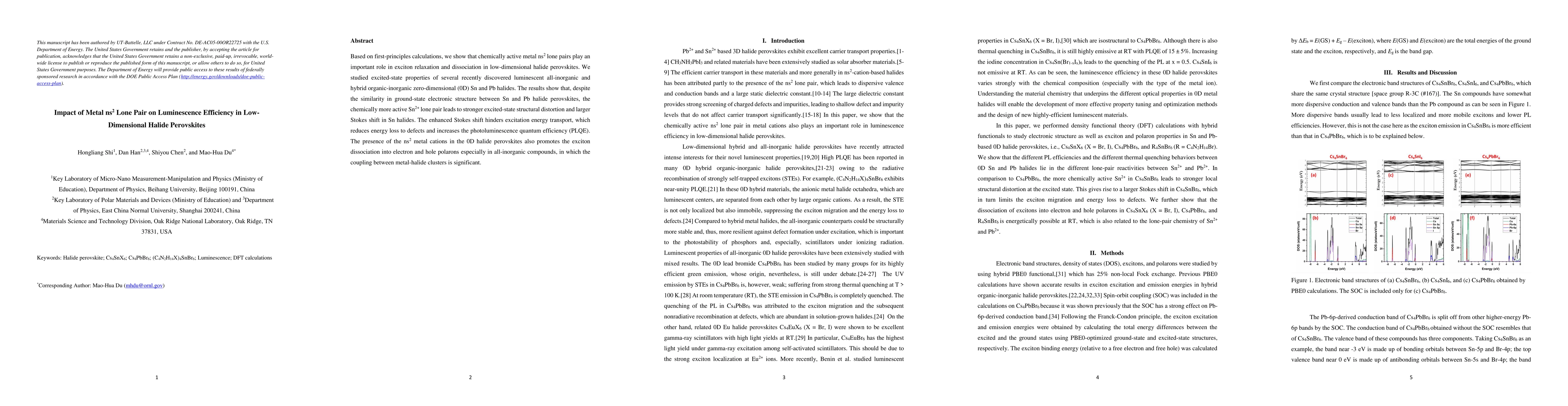 This study reveals that metal ns2 lone pairs, particularly Sn2+, significantly affect exciton relaxation and dissociation in luminescent halide perovskites, enhancing photoluminescence quantum efficiency by reducing energy loss to defects and promoting exciton dissociation.