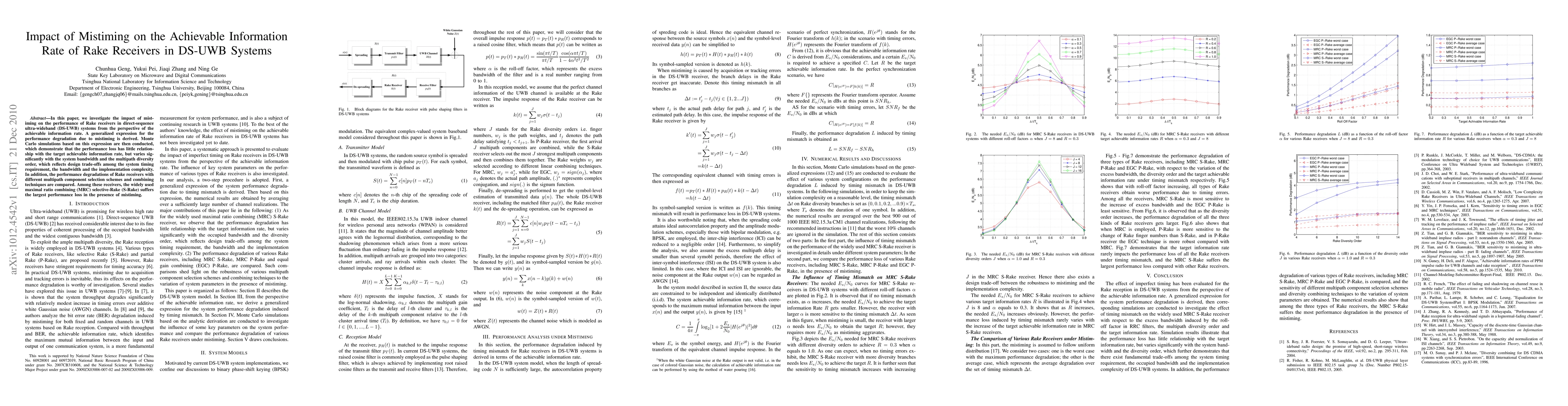 This paper examines how mistiming affects the achievable information rate of Rake receivers in DS-UWB systems, deriving a generalized expression for performance degradation. Simulation results show that the impact is more significant with higher bandwidth and multipath diversity, highlighting design trade-offs, and reveal that maximal ratio combining selective-Rake receivers suffer the most from mistiming.