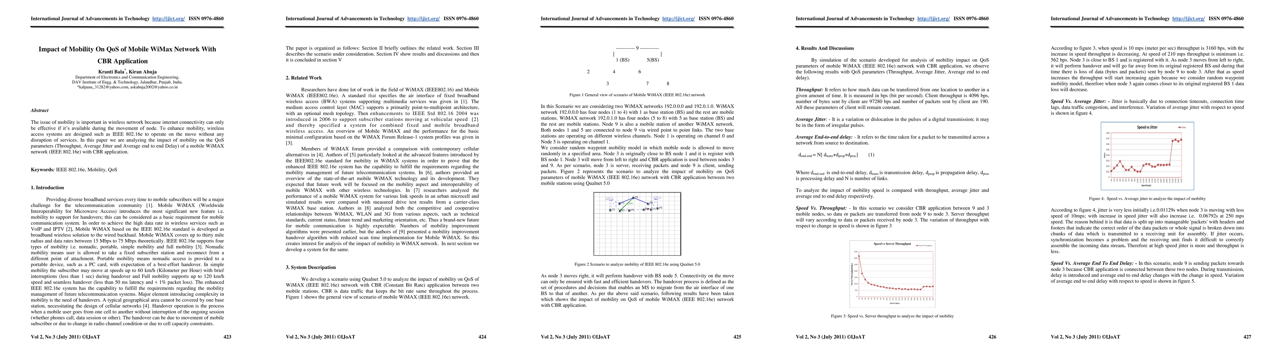 This paper investigates how mobility affects the Quality of Service (QoS) parameters—throughput, average jitter, and average end-to-end delay—in a mobile WiMAX network (IEEE 802.16e) using Constant Bit Rate (CBR) applications. The study aims to understand service disruptions during node movement in wireless networks.