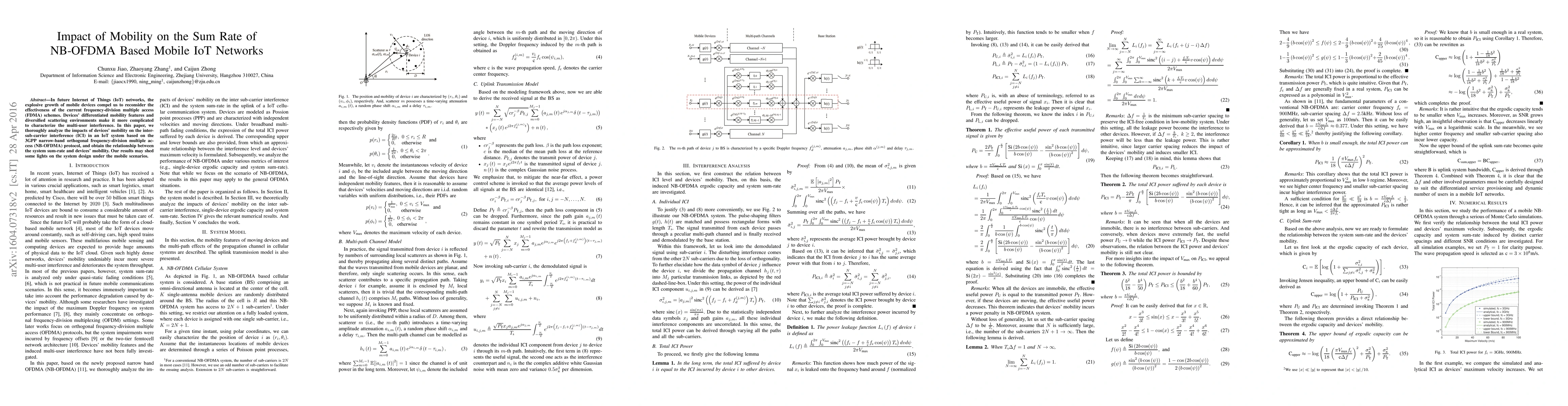 This paper analyzes how device mobility affects interference in NB-OFDMA based mobile IoT networks, finding a relationship between system sum-rate and devices' mobility that can inform system design.