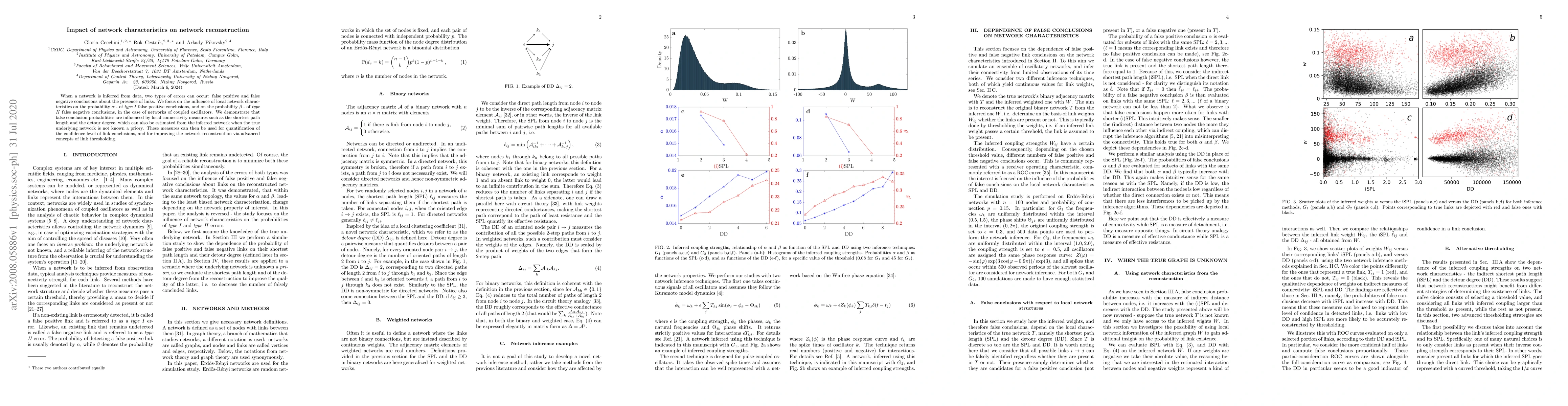 When a network is inferred from data, two types of errors can occur: false positive and false negative conclusions about the presence of links. We focus on the influence of local network characteristics on the probability $\alpha$ - of type I false positive conclusions, and on the probability $\beta$ - of type II false negative conclusions, in the case of networks of coupled oscillators. We demonstrate that false conclusion probabilities are influenced by local connectivity measures such as the shortest path length and the detour degree, which can also be estimated from the inferred network when the true underlying network is not known a priory. These measures can then be used for quantification of the confidence level of link conclusions, and for improving the network reconstruction via advanced concepts of link thresholding.