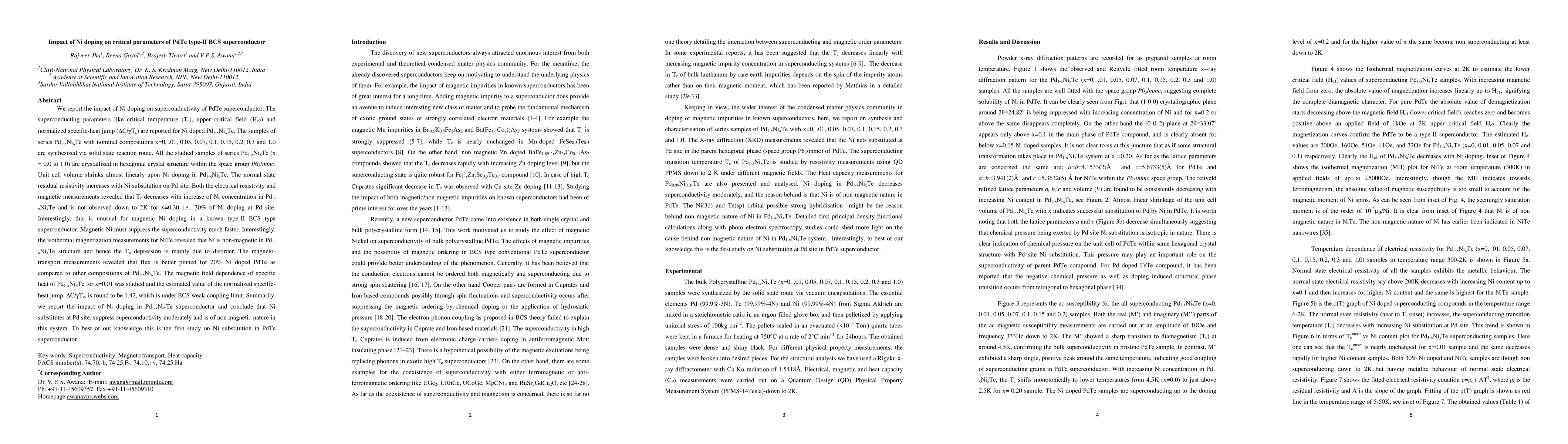 We report the impact of Ni doping on superconductivity of PdTe superconductor. The superconducting parameters like critical temperature (Tc), upper critical field (Hc2) and normalized specific-heat jump are reported for Ni doped Pd1-xNixTe. The samples of series Pd1-xNixTe with nominal compositions x=0, .01, 0.05, 0.07, 0.1, 0.15, 0.2, 0.3 and 1.0 are synthesized via solid state reaction route. All the studied samples of series Pd1-xNixTe (x = 0.0 to 1.0) are crystallized in hexagonal crystal structure within the space group P63/mmc. Unit cell volume shrinks almost linearly upon Ni doping in Pd1-xNixTe. The normal state residual resistivity increases with Ni substitution on Pd site. Both the electrical resistivity and magnetic measurements revealed that Tc decreases with increase of Ni concentration in Pd1-xNixTe and is not observed down to 2K for x=0.30 i.e., 30% of Ni doping at Pd site. Interestingly, this is unusual for magnetic Ni doping in a known type-II BCS type superconductor. Magnetic Ni must suppress the superconductivity much faster. Interestingly, the isothermal magnetization measurements for NiTe revealed that Ni is non-magnetic in Pd1-xNixTe structure and hence the Tc depression is mainly due to disorder. The magneto-transport measurements revealed that flux is better pinned for 20% Ni doped PdTe as compared to other compositions of Pd1-xNixTe. The magnetic field dependence of specific heat of Pd1-xNixTe for x=0.01 was studied and the estimated value of the normalized specific-heat jump,is found to be 1.42, which is under BCS weak-coupling limit. Summarily, we report the impact of Ni doping in Pd1-xNixTe superconductor and conclude that Ni substitutes at Pd site, suppress superconductivity moderately and is of non magnetic nature in this system. To best of our knowledge this is the first study on Ni substitution in PdTe superconductor.