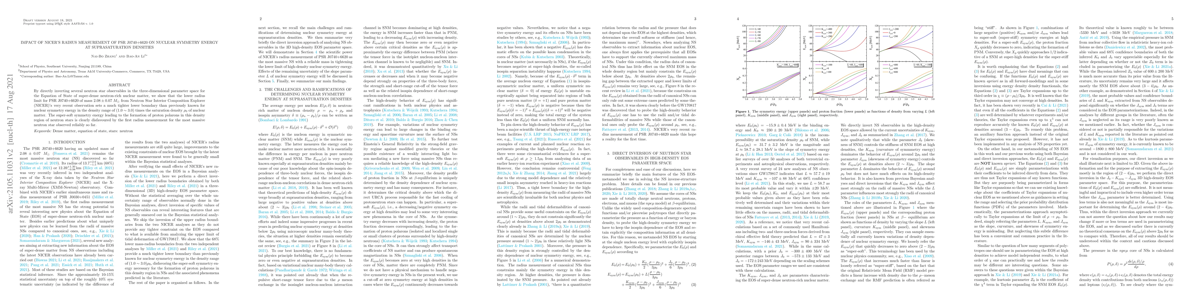 Summary: NICER's radius measurement of PSR J0740+6620 establishes a tighter lower limit for nuclear symmetry energy at suprasaturation densities, disfavoring super-soft symmetry energy models and supporting more conventional equations of state for neutron-rich nuclear matter.
