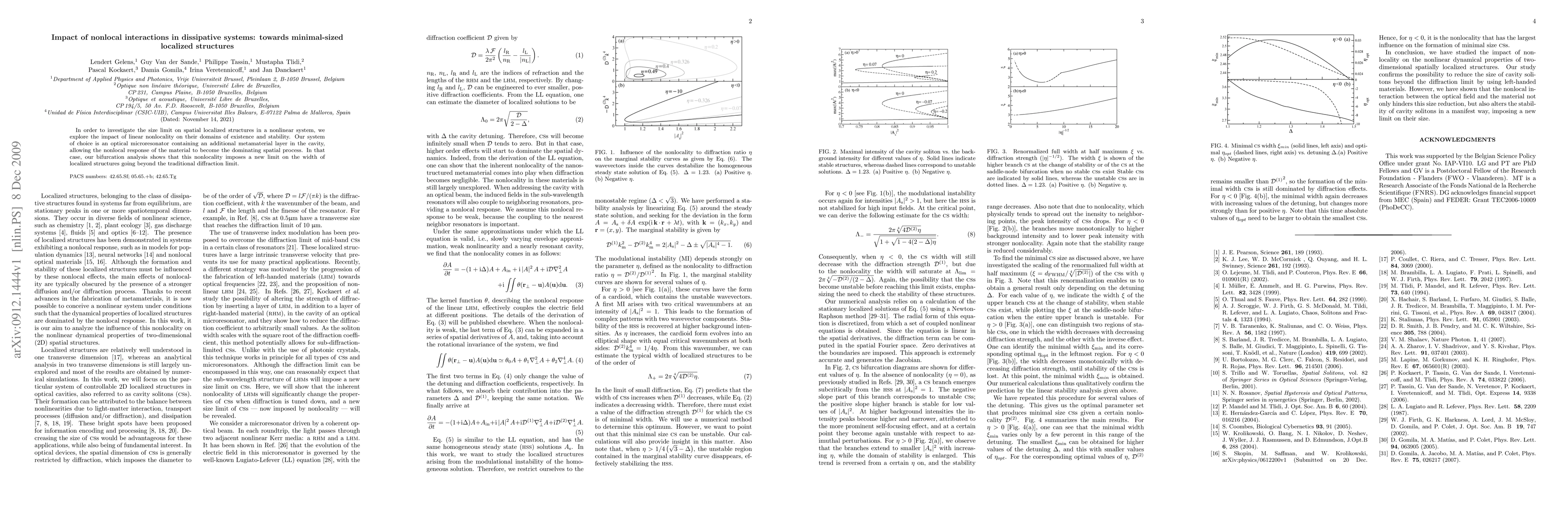 Summary: This study examines how linear nonlocal interactions in optical microresonators with metamaterial layers influence the size and stability of localized structures, revealing that nonlocality imposes a new limit on their width beyond the traditional diffraction limit.