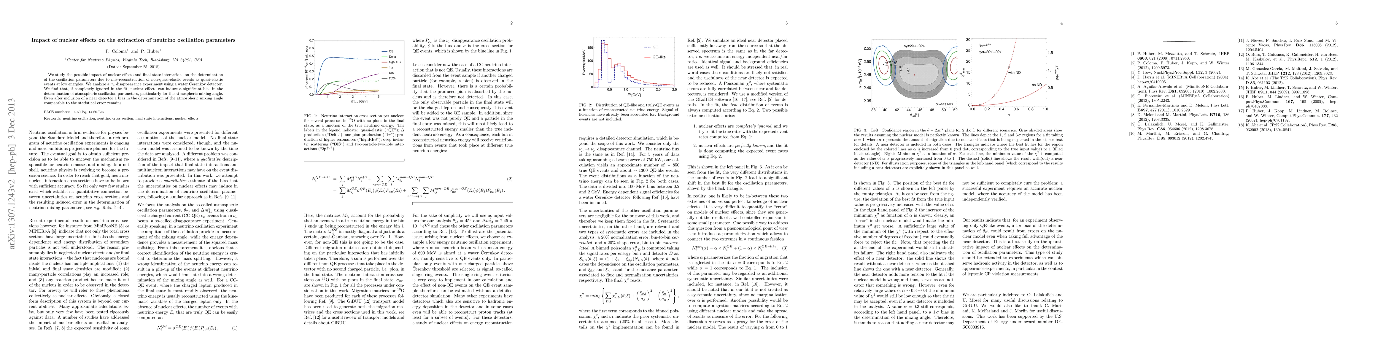 We study the possible impact of nuclear effects and final state interactions on the determination of the oscillation parameters due to mis-reconstruction of non-quasi-elastic events as quasi-elastic events at low energies. We analyze a $\nu_\mu$ disappearance experiment using a water \v{C}erenkov detector. We find that, if completely ignored in the fit, nuclear effects can induce a significant bias in the determination of atmospheric oscillation parameters, particularly for the atmospheric mixing angle. Even after inclusion of a near detector a bias in the determination of the atmospheric mixing angle comparable to the statistical error remains.