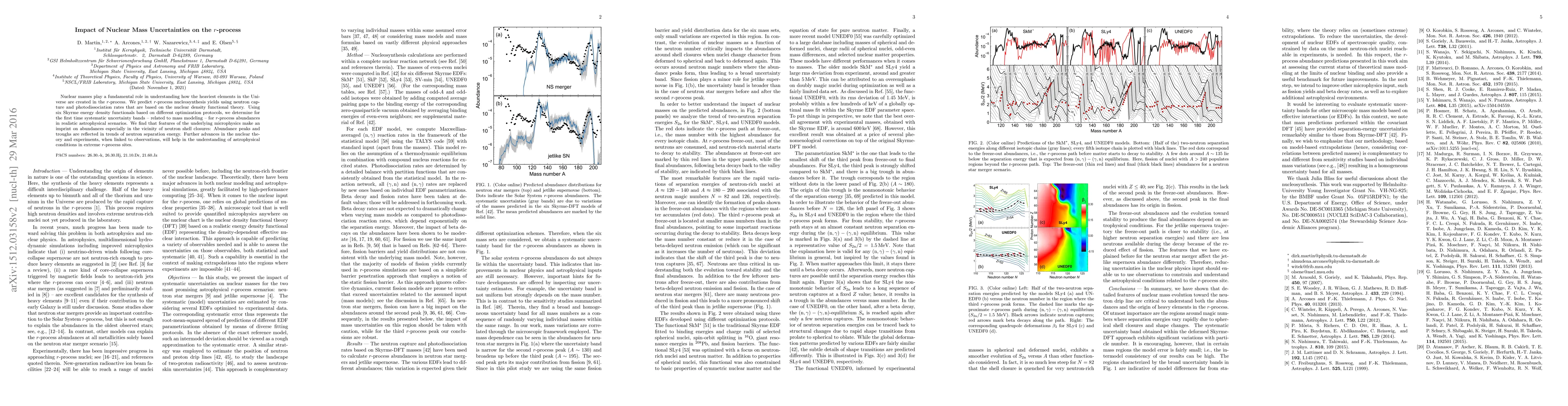 This study investigates the impact of nuclear mass uncertainties on $r$-process nucleosynthesis, revealing systematic uncertainty bands derived from different nuclear density functional models. It highlights that microphysical features, particularly near neutron shell closures, significantly influence $r$-process abundances, emphasizing the need for improved nuclear theory and experimental data to better understand extreme astrophysical environments.