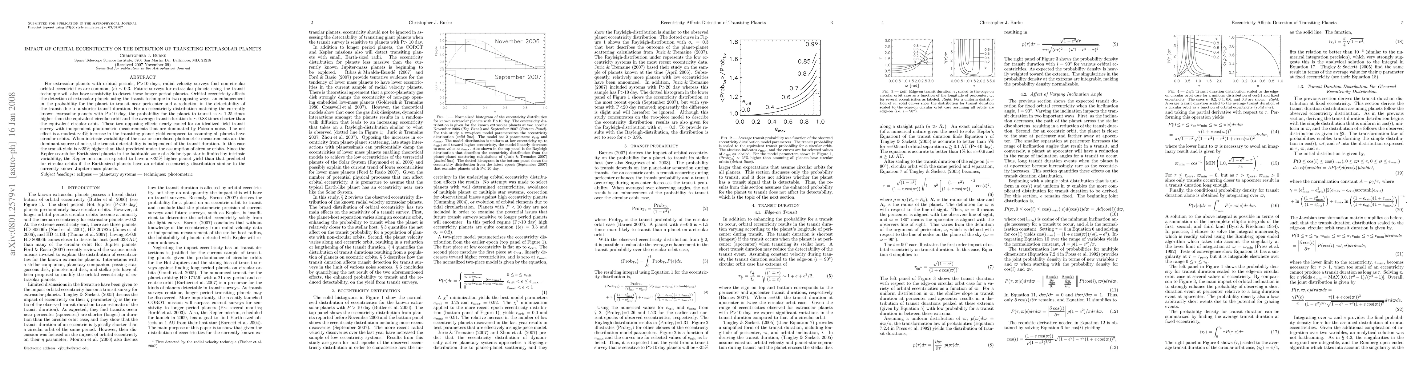 This paper examines how orbital eccentricity influences the detection of transiting extrasolar planets, particularly those with periods longer than 10 days. It finds that while eccentricity enhances the probability of transits near pericenter, it shortens transit durations, leading to a net modest ~4% increase in detectable transiting planets under ideal conditions. However, for missions like Kepler, where intrinsic stellar variability dominates, the yield can be up to 25% higher than expected from circular orbits.