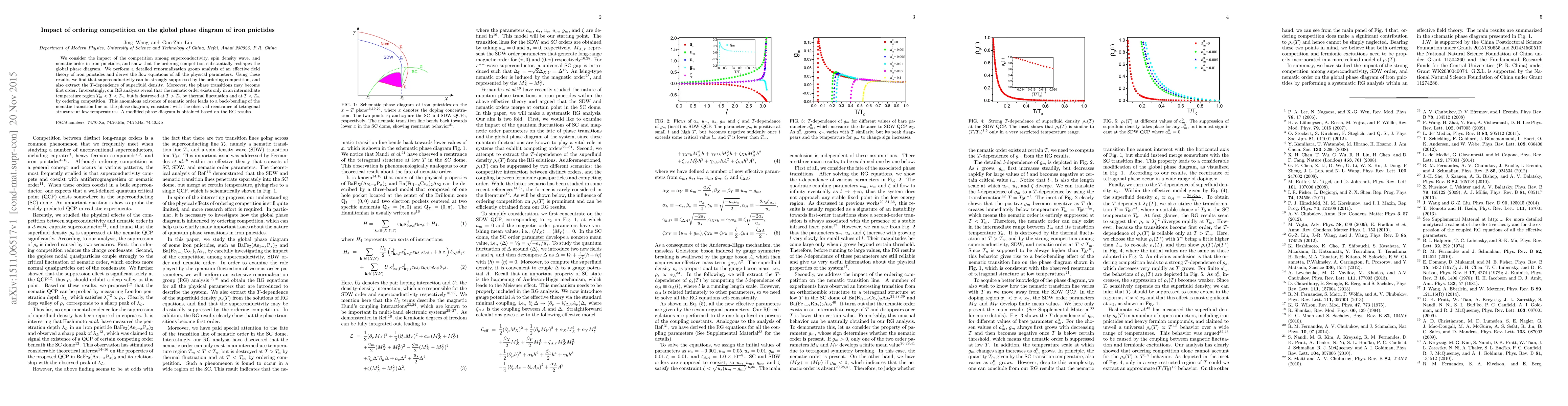 This research investigates how the competition among superconductivity, spin density wave, and nematic order in iron pnictides affects their global phase diagram, revealing that superconductivity can be suppressed and phase transitions may become first order. The renormalization group analysis shows nematic order exists only in an intermediate temperature range, leading to a back-bending of the nematic transition line.