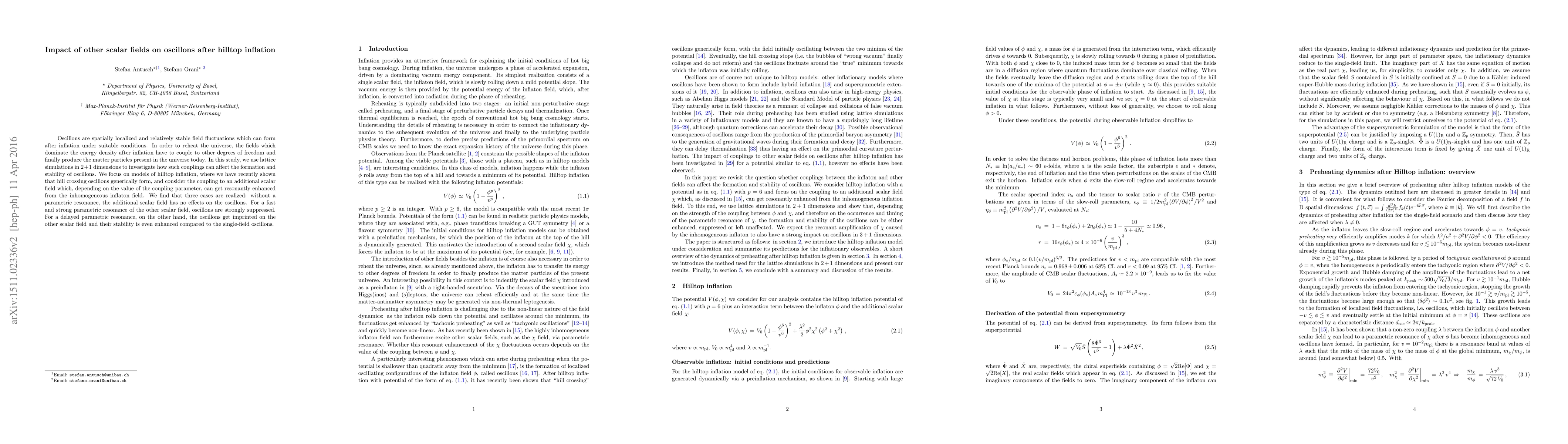 This study investigates the impact of additional scalar fields on the formation and stability of oscillons following hilltop inflation, using lattice simulations. It finds three scenarios: no effect without resonance, strong suppression with fast resonance, and enhanced stability with delayed resonance.