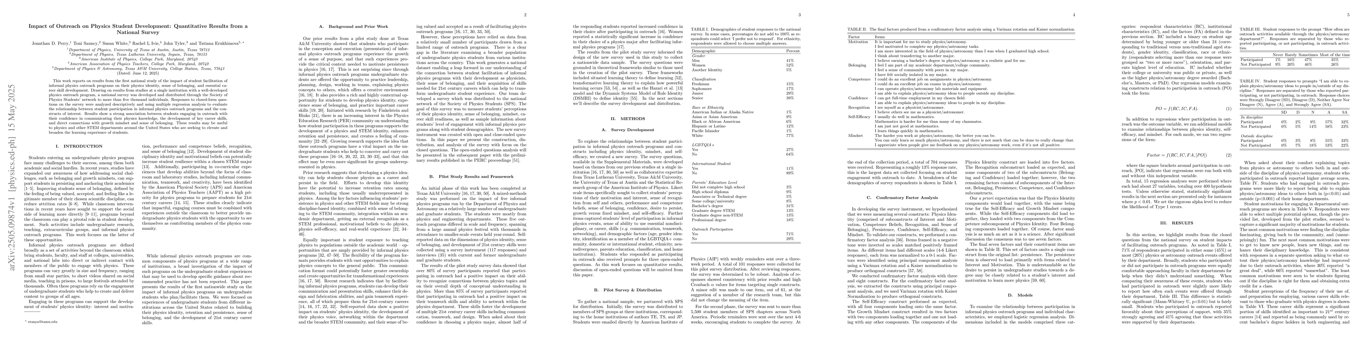 This research is the first national study examining the effects of student outreach facilitation on physics identity and career skill development, building upon previous single-institution findings.