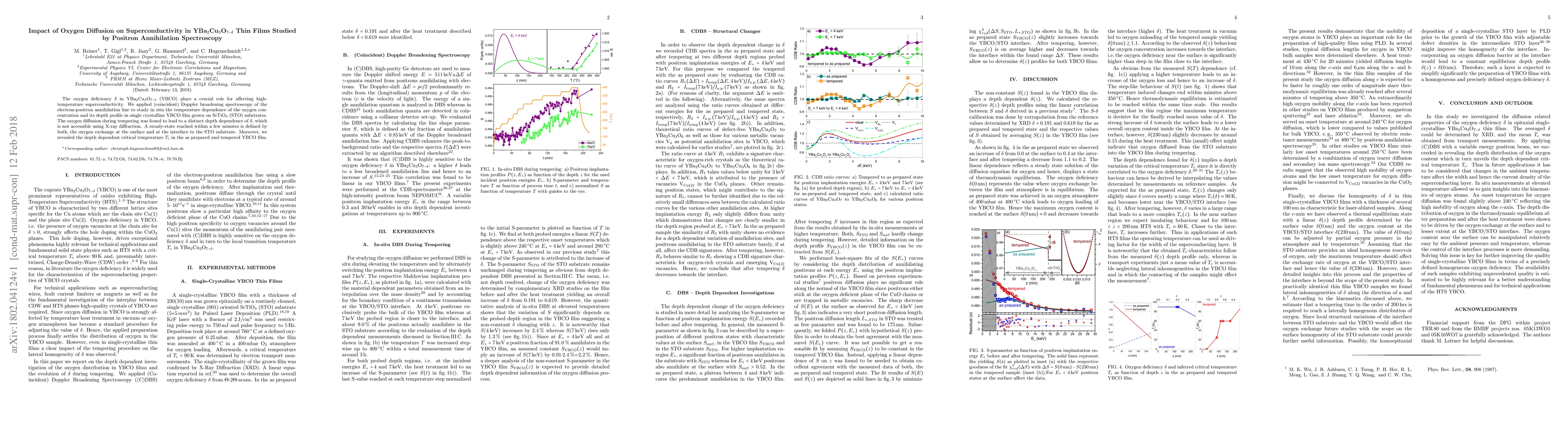 This study uses positron annihilation spectroscopy to investigate the oxygen diffusion impact on superconductivity in YBa$_2$Cu$_3$O$_{7-\delta}$ thin films, revealing a distinct depth-dependent oxygen deficiency and critical temperature $T_{\mathrm{c}}$, influenced by tempering and surface/interface oxygen exchange.