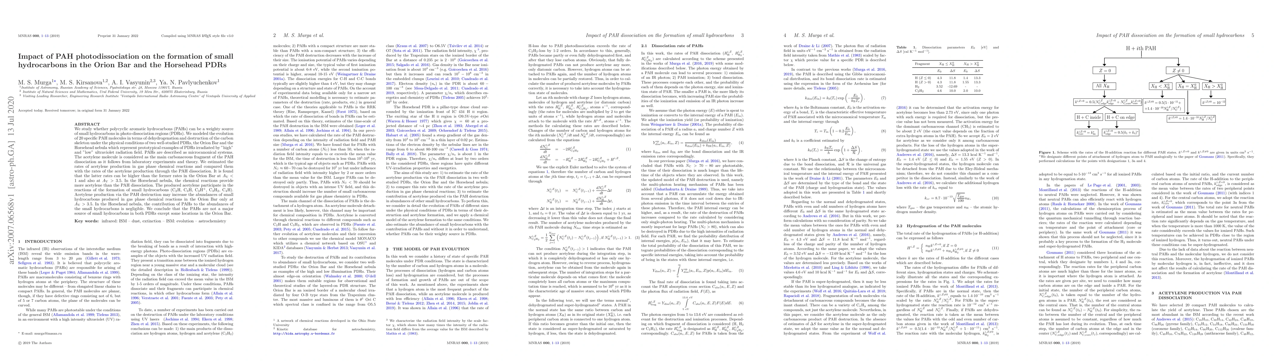 This study investigates the role of PAH photodissociation in forming small hydrocarbons in the Orion Bar and Horsehead PDRs, finding that PAHs contribute more to acetylene production in the Orion Bar under certain conditions, while gas-phase chemical reactions dominate acetylene formation in the Horsehead nebula.