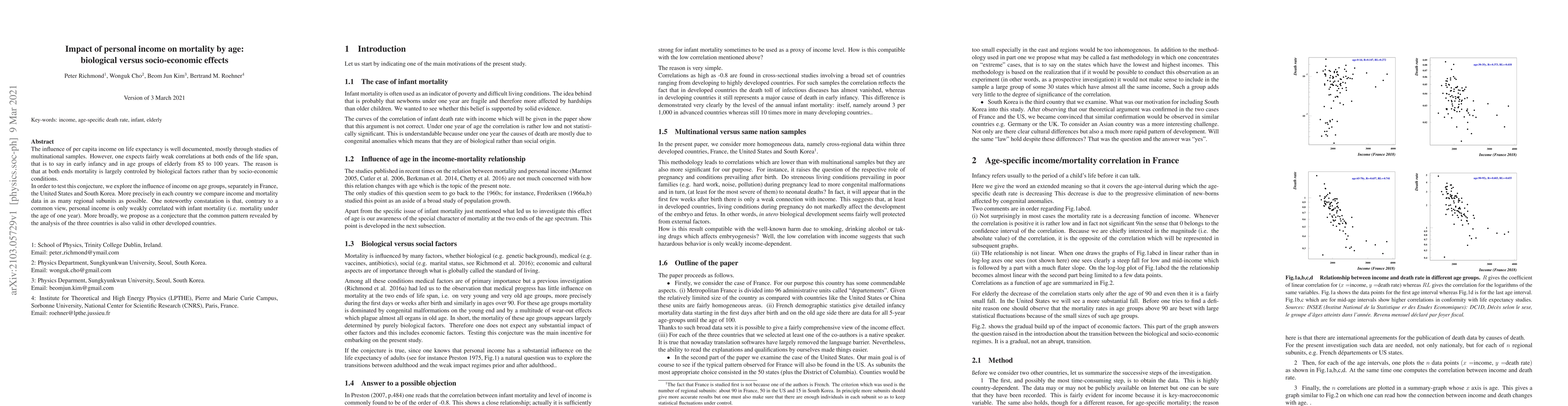 This study explores how personal income affects mortality rates across different age groups in France, the US, and South Korea, finding that income has a weak correlation with infant mortality but stronger effects on mortality among older adults.