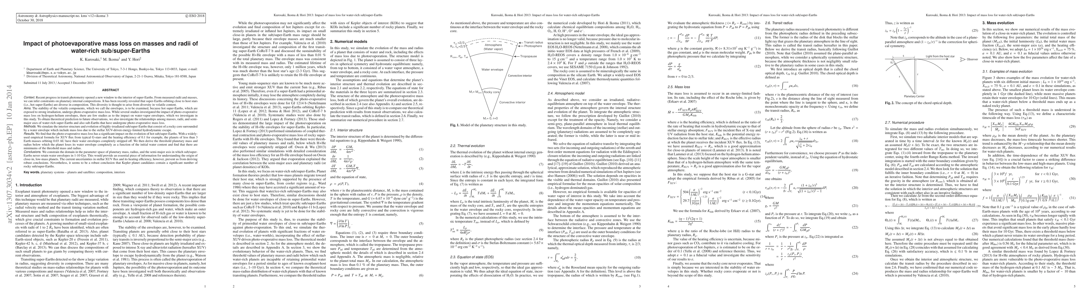 This paper investigates the impact of photoevaporative mass loss on the masses and radii of water-rich sub/super-Earths, finding that significant mass loss can strip away water envelopes, leading to minimum threshold masses and radii below which planets lose their water entirely. The study highlights the importance of understanding these processes for the origin of close-in low-mass planets, though uncertainties in stellar XUV flux limit robust conclusions.