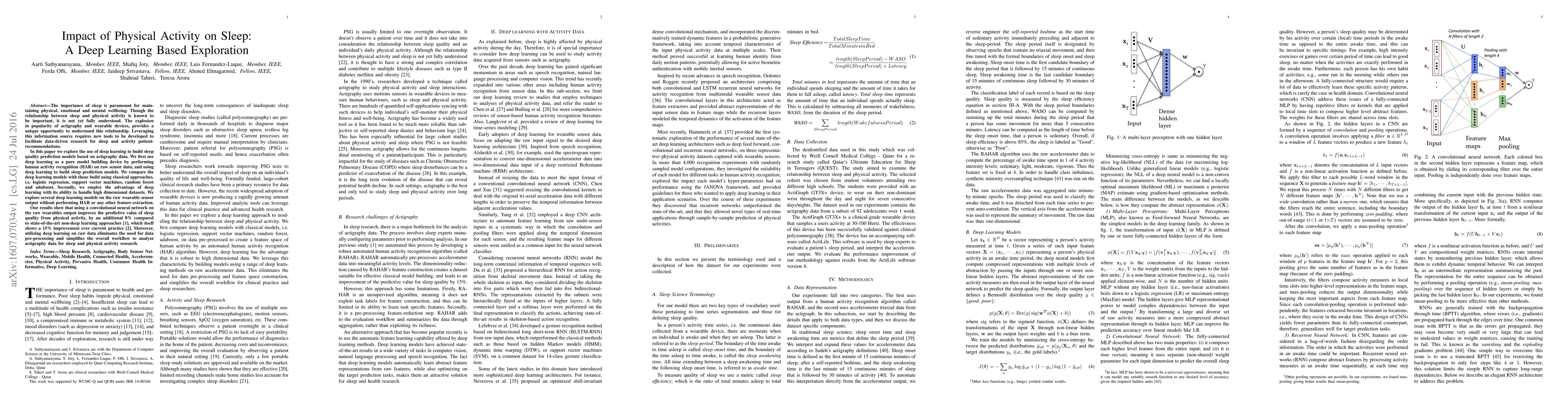 The importance of sleep is paramount for maintaining physical, emotional and mental wellbeing. Though the relationship between sleep and physical activity is known to be important, it is not yet fully understood. The explosion in popularity of actigraphy and wearable devices, provides a unique opportunity to understand this relationship. Leveraging this information source requires new tools to be developed to facilitate data-driven research for sleep and activity patient-recommendations. In this paper we explore the use of deep learning to build sleep quality prediction models based on actigraphy data. We first use deep learning as a pure model building device by performing human activity recognition (HAR) on raw sensor data, and using deep learning to build sleep prediction models. We compare the deep learning models with those build using classical approaches, i.e. logistic regression, support vector machines, random forest and adaboost. Secondly, we employ the advantage of deep learning with its ability to handle high dimensional datasets. We explore several deep learning models on the raw wearable sensor output without performing HAR or any other feature extraction. Our results show that using a convolutional neural network on the raw wearables output improves the predictive value of sleep quality from physical activity, by an additional 8% compared to state-of-the-art non-deep learning approaches, which itself shows a 15% improvement over current practice. Moreover, utilizing deep learning on raw data eliminates the need for data pre-processing and simplifies the overall workflow to analyze actigraphy data for sleep and physical activity research.