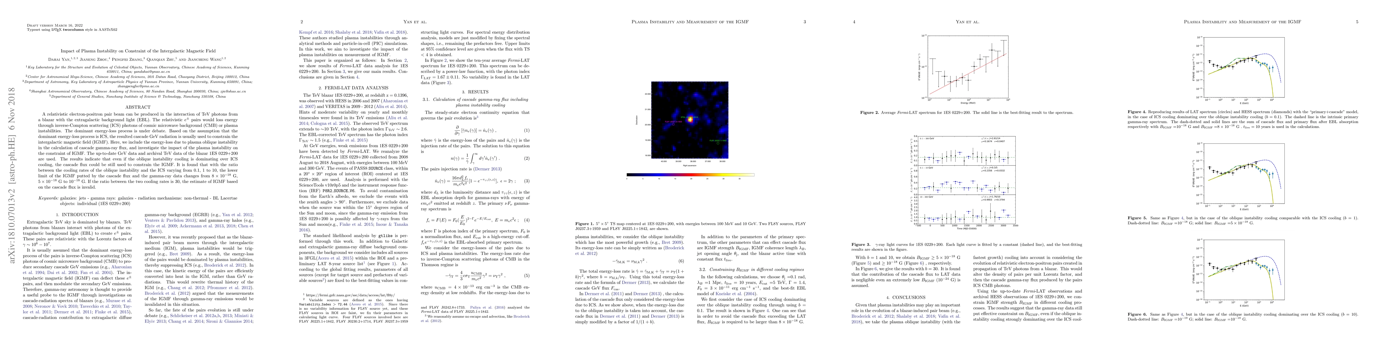 A relativistic electron-positron pair beam can be produced in the interaction of TeV photons from a blazar with the extragalactic background light (EBL). The relativistic $e^{\pm}$ pairs would loss energy through inverse-Compton scattering (ICS) photons of cosmic microwave background (CMB) or plasma instabilities. The dominant energy-loss process is under debate. Based on the assumption that the dominant energy-loss process is ICS, the resulted cascade GeV radiation is usually used to constrain the intergalactic magnetic field (IGMF). Here, we include the energy-loss due to plasma oblique instability in the calculation of cascade gamma-ray flux, and investigate the impact of the plasma instability on the constraint of IGMF. The up-to-date GeV data and archival TeV data of the blazar 1ES 0229+200 are used. The results indicate that even if the oblique instability cooling is dominating over ICS cooling, the cascade flux could be still used to constrain the IGMF. It is found that with the ratio between the cooling rates of the oblique instability and the ICS varying from 0.1, 1 to 10, the lower limit of the IGMF putted by the cascade flux and the gamma-ray data changes from $8\times10^{-18}\ $G, $5\times10^{-18}\ $G to $10^{-18}\ $G. If the ratio between the two cooling rates is 30, the estimate of IGMF based on the cascade flux is invalid.