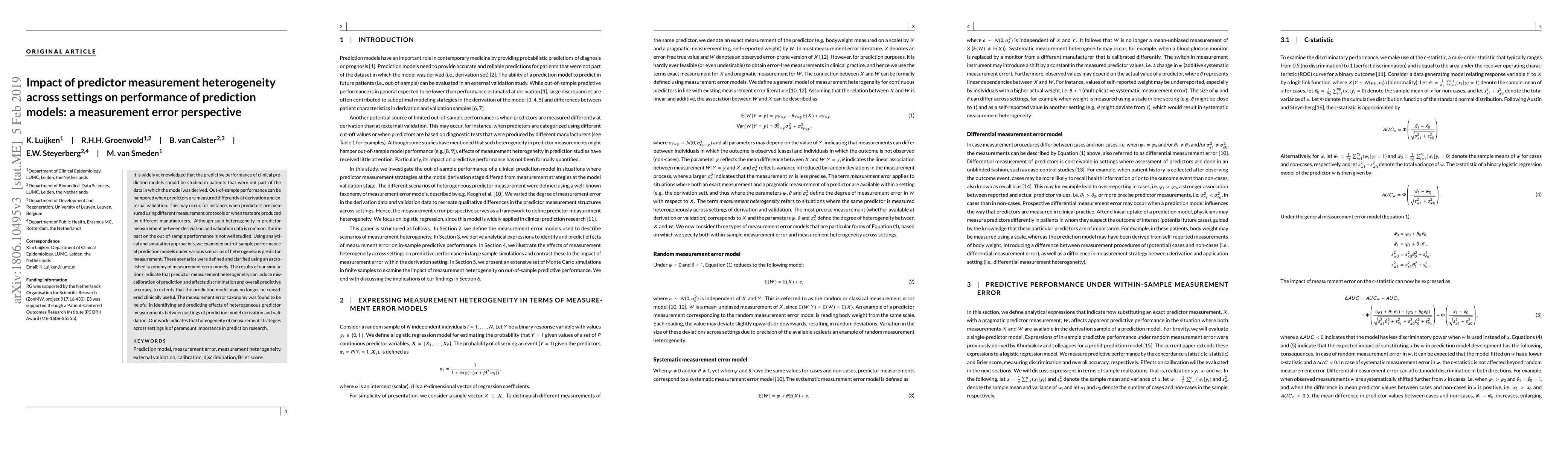 This paper investigates how differences in predictor measurement protocols between the derivation and validation of clinical prediction models can lead to miscalibration and reduced predictive accuracy, using analytical and simulation methods. The study emphasizes the importance of consistent measurement strategies to ensure the clinical utility of prediction models.