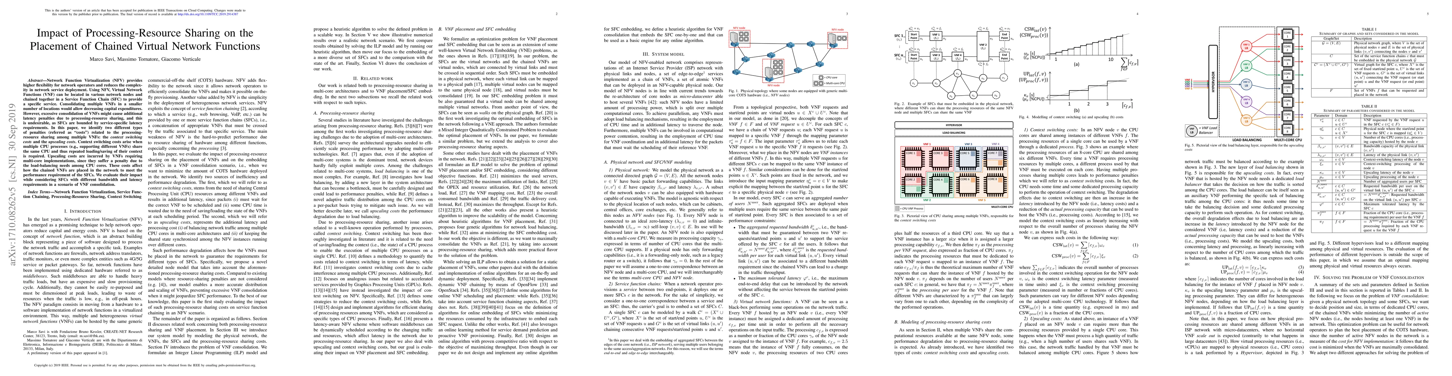 This paper explores the impact of processing-resource sharing on network function virtualization placement, highlighting two types of penalties: context switching costs and upscaling costs, which affect performance requirements.