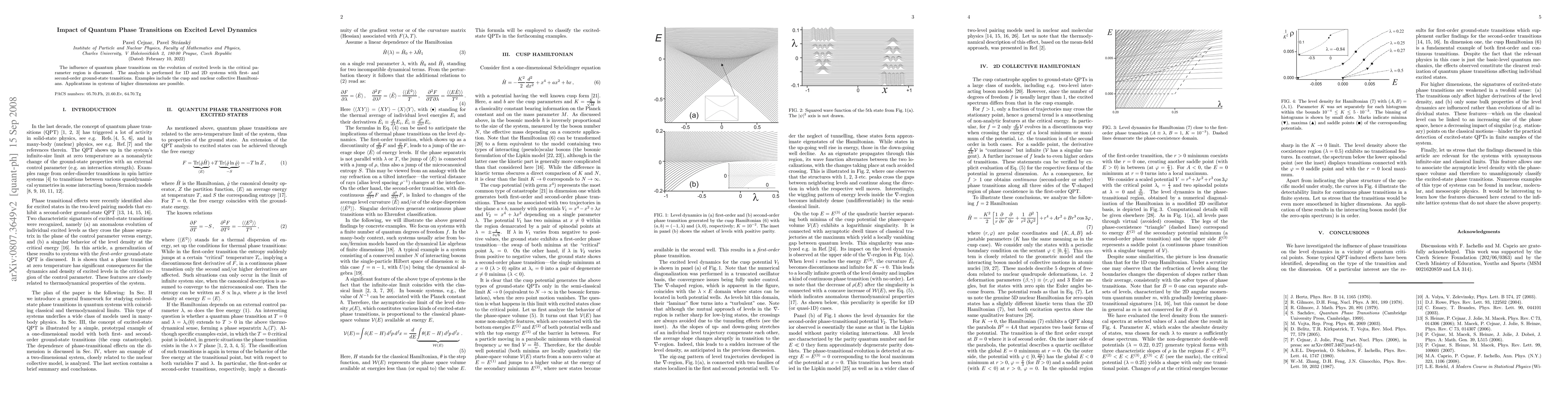 This paper explores how quantum phase transitions affect excited level dynamics in one- and two-dimensional systems undergoing ground-state transitions. It provides insights into the behavior of these systems using specific Hamiltonians.
