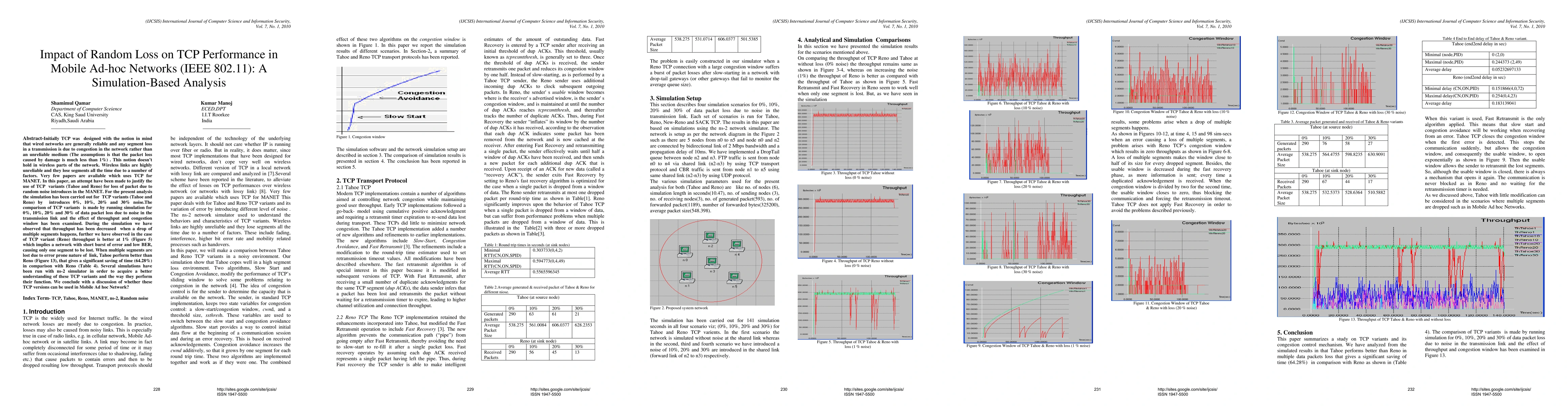 Initially TCP was designed with the notion in mind that wired networks are generally reliable and any segment loss in a transmission is due to congestion in the network rather than an unreliable medium (The assumptions is that the packet loss caused by damage is much less than 1 percent) . This notion doesnt hold in wireless parts of the network. Wireless links are highly unreliable and they lose segments all the time due to a number of factors. Very few papers are available which uses TCP for MANET. In this paper, an attempt have been made to justify the use of TCP variants (Tahoe and Reno) for loss of packet due to random noise introduces in the MANET. For the present analysis the simulation has been carried out for TCP variants (Tahoe and Reno) by introduces 0, 10, 20 and 30 percent noise. The comparison of TCP variants is made by running simulation for 0, 10, 20 and 30 percent of data packet loss due to noise in the transmission link and the effect of throughput and congestion window has been examined. During the simulation we have observed that throughput has been decreased when a drop of multiple segments happens, further we have observed in the case of TCP variant (Reno) throughput is better at 1 percent (Figure 5) which implies a network with short burst of error and low BER, causing only one segment to be lost. When multiple segments are lost due to error prone nature of link, Tahoe perform better than Reno (Figure 13), that gives a significant saving of time (64.28 percent) in comparison with Reno (Table 4). Several simulations have been run with ns 2 simulator in order to acquire a better understanding of these TCP variants and the way they perform their function. We conclude with a discussion of whether these TCP versions can be used in Mobile Ad hoc Network.