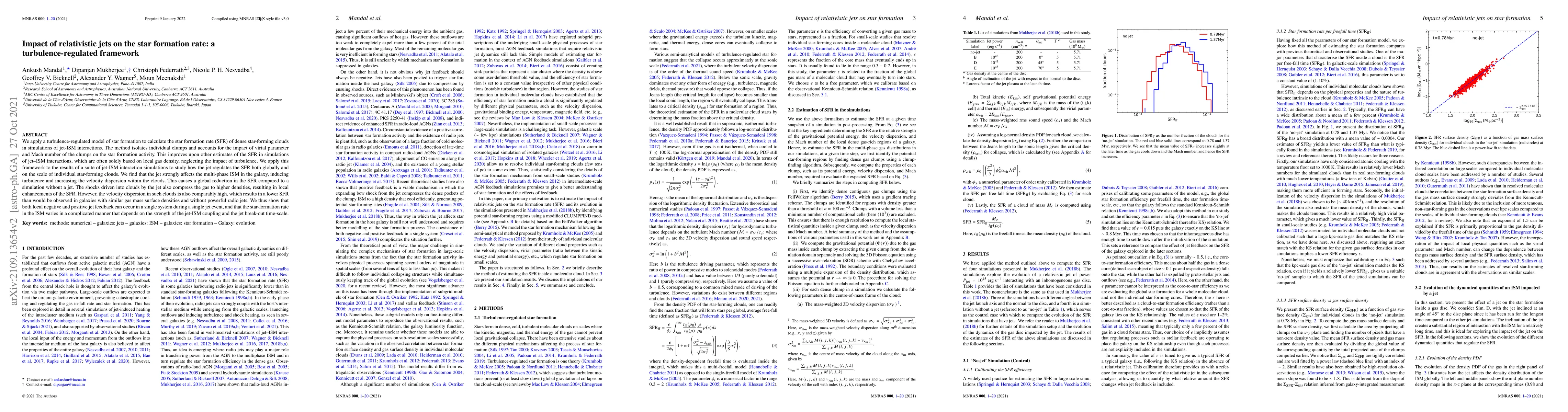 This study uses a turbulence-regulated model to analyze the impact of relativistic jets on star formation rates in dense clouds, finding that jets induce turbulence and reduce the global SFR, while locally enhancing SFR through gas compression, but with high velocity dispersions lowering overall star formation efficiency.