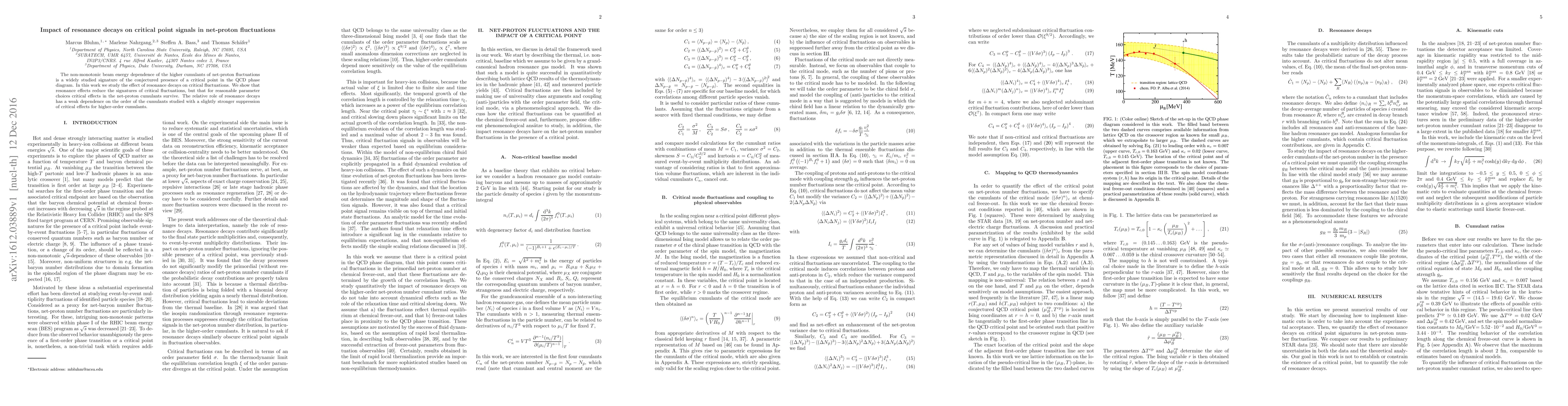 This paper investigates how resonance decays influence the signatures of critical fluctuations in net-proton fluctuations, finding that while they reduce critical point signals, these effects persist for reasonable parameters. The suppression of critical effects is slightly stronger for higher-order cumulants.