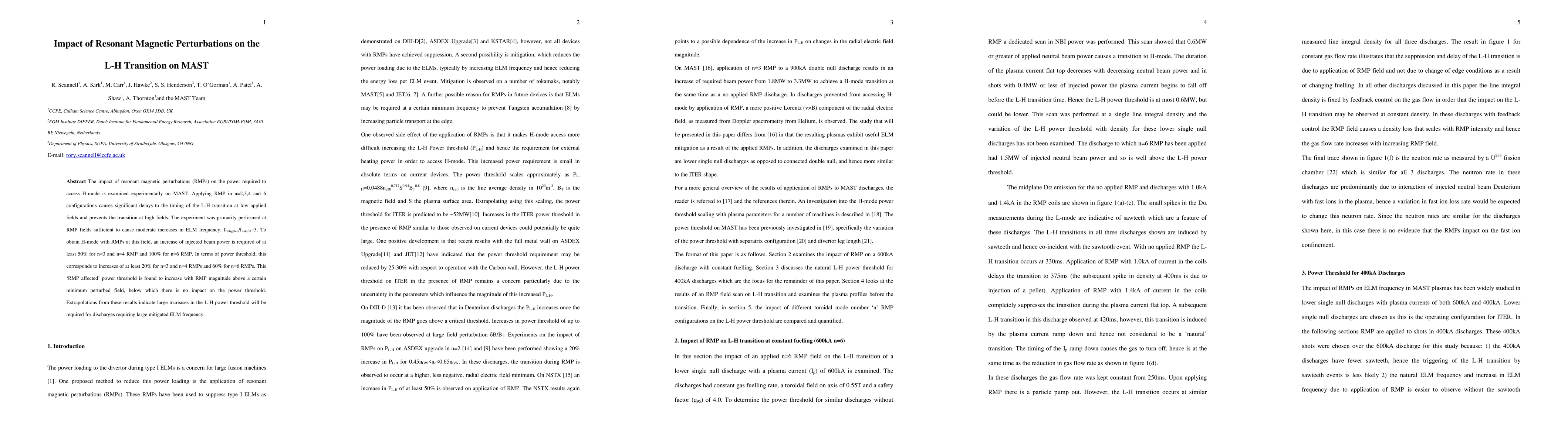 The study found that resonant magnetic perturbations significantly delay L-H transition in MAST experiments, requiring increased injected beam power to achieve H-mode. The 'RMP affected' power threshold increases with RMP magnitude above a certain minimum, indicating large future increases required for high ELM frequencies.