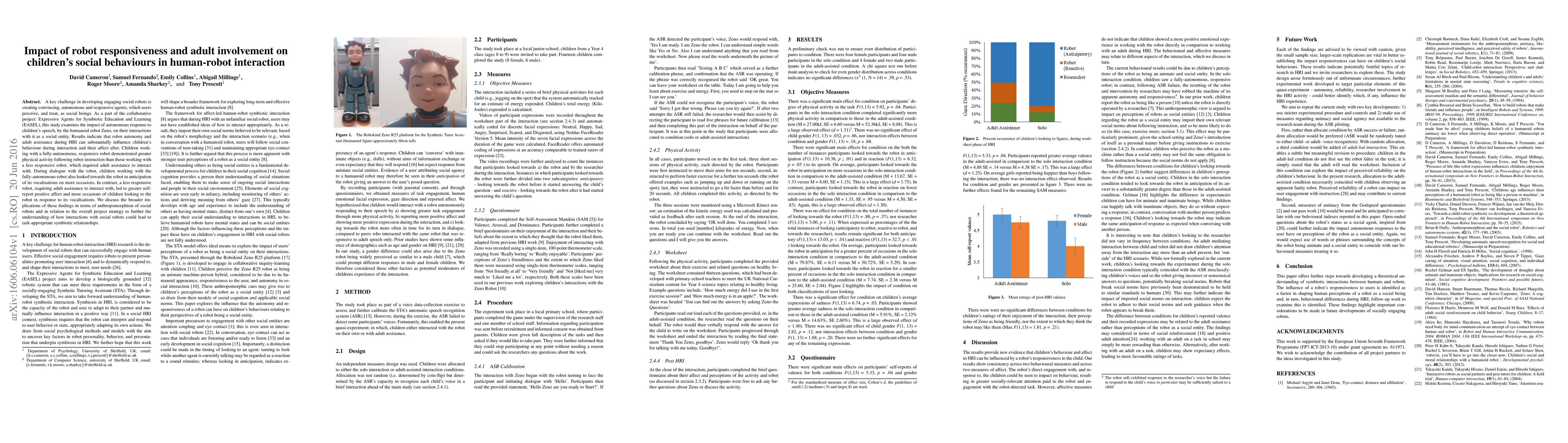A key challenge in developing engaging social robots is creating convincing, autonomous and responsive agents, which users perceive, and treat, as social beings. As a part of the collaborative project: Expressive Agents for Symbiotic Education and Learning (EASEL), this study examines the impact of autonomous response to children's speech, by the humanoid robot Zeno, on their interactions with it as a social entity. Results indicate that robot autonomy and adult assistance during HRI can substantially influence children's behaviour during interaction and their affect after. Children working with a fully-autonomous, responsive robot demonstrated greater physical activity following robot instruction than those working with a less responsive robot, which required adult assistance to interact with. During dialogue with the robot, children working with the fully-autonomous robot also looked towards the robot in anticipation of its vocalisations on more occasions. In contrast, a less responsive robot, requiring adult assistance to interact with, led to greater self-report positive affect and more occasions of children looking to the robot in response to its vocalisations. We discuss the broader implications of these findings in terms of anthropomorphism of social robots and in relation to the overall project strategy to further the understanding of how interactions with social robots could lead to task-appropriate symbiotic relationships.