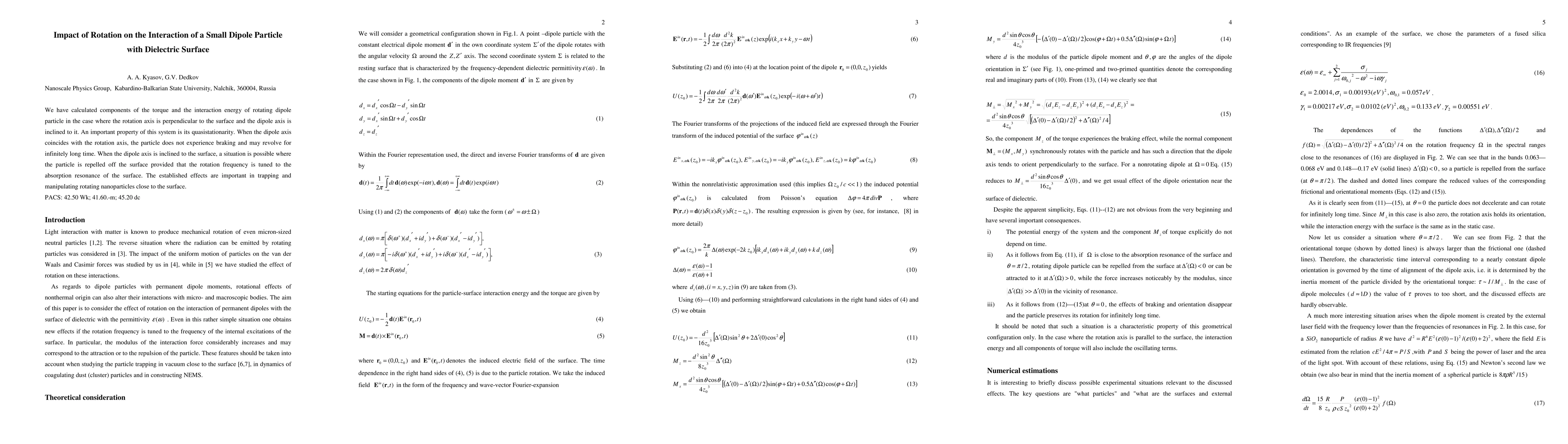 A rotating dipole particle's interaction with a dielectric surface can lead to quasistationarity and infinite rotation if the axis aligns, or repulsion off the surface if the rotation frequency matches the surface's absorption resonance.