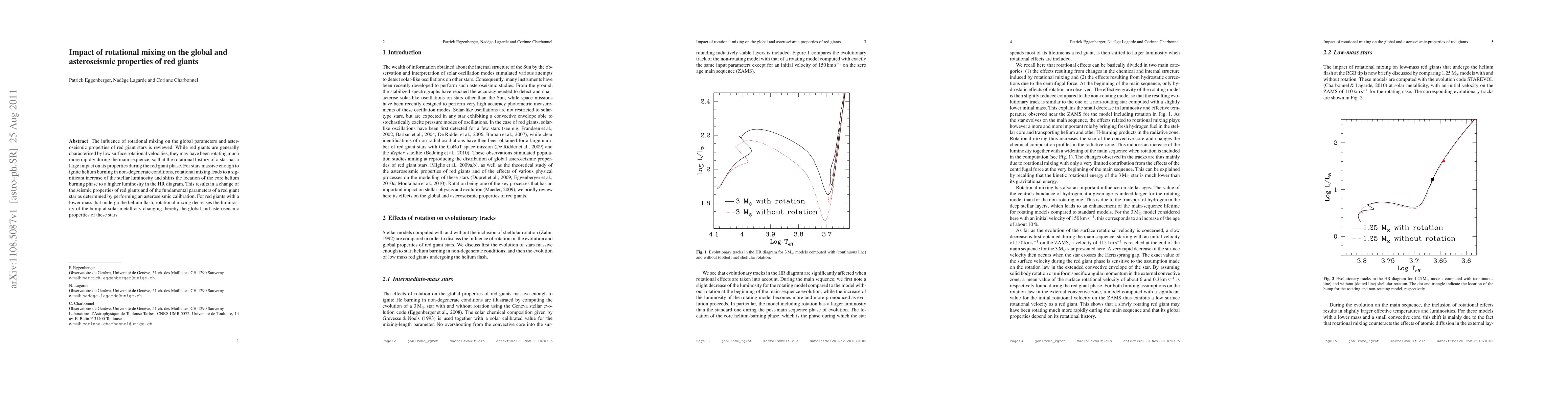 This paper reviews how rotational mixing affects the global and asteroseismic properties of red giant stars, noting that past rapid rotation influences current luminosity and seismic characteristics. For massive red giants, rotational mixing increases luminosity and shifts core helium burning, while for lower-mass stars, it decreases luminosity and alters their global and asteroseismic properties.