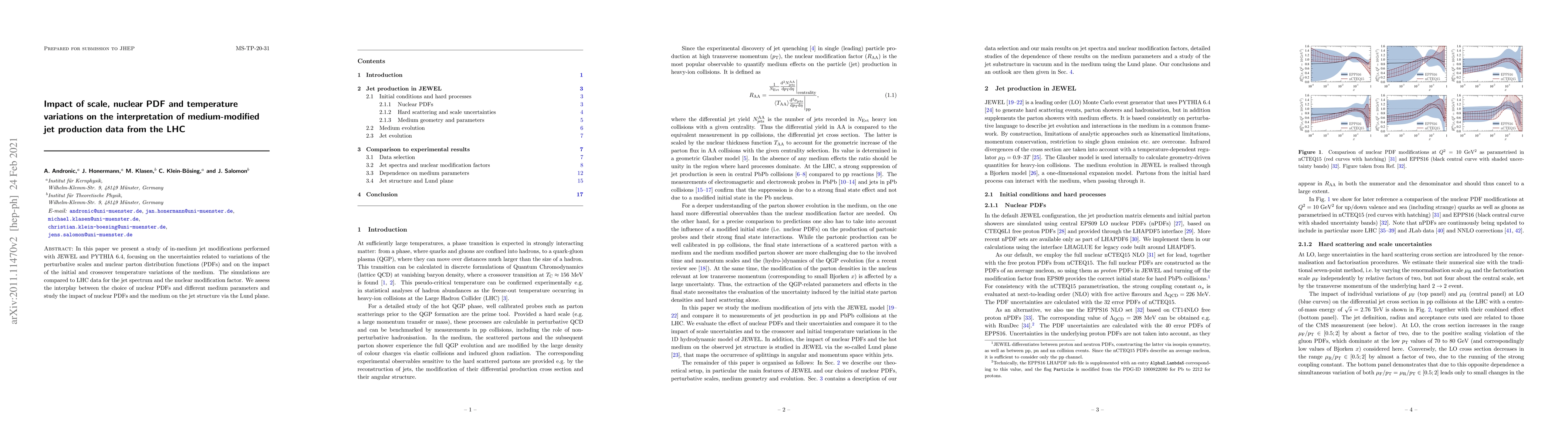 This paper presents a detailed analysis of medium-modified jet production data using JEWEL and PYTHIA 6.4, examining the impact of scale, nuclear PDF, and temperature variations on jet spectra and the nuclear modification factor RAA.