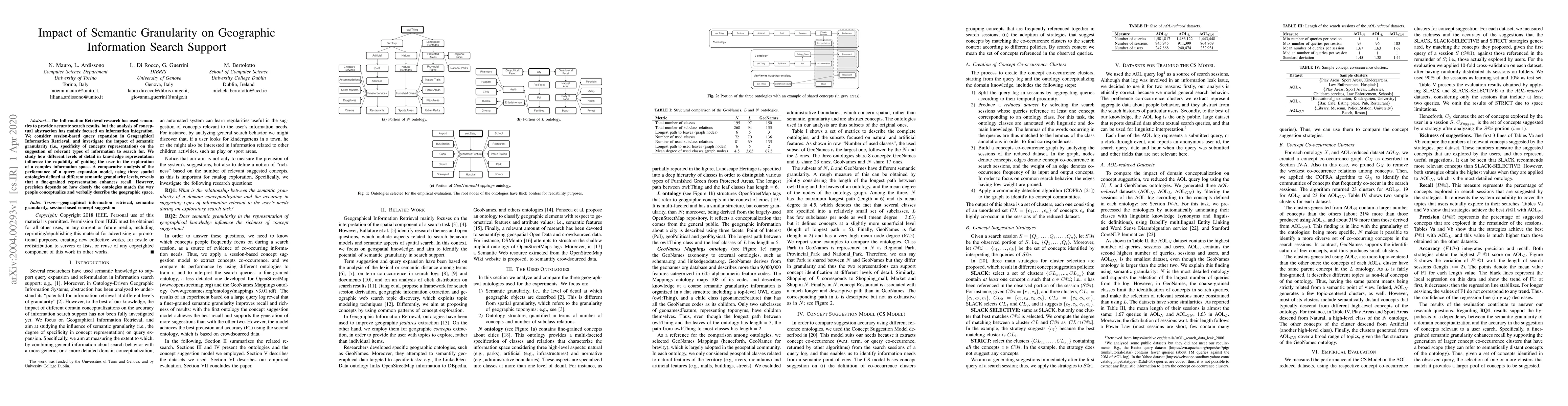 The research investigates how semantic granularity in geographical knowledge conceptualization influences concepts suggestions in information search support.