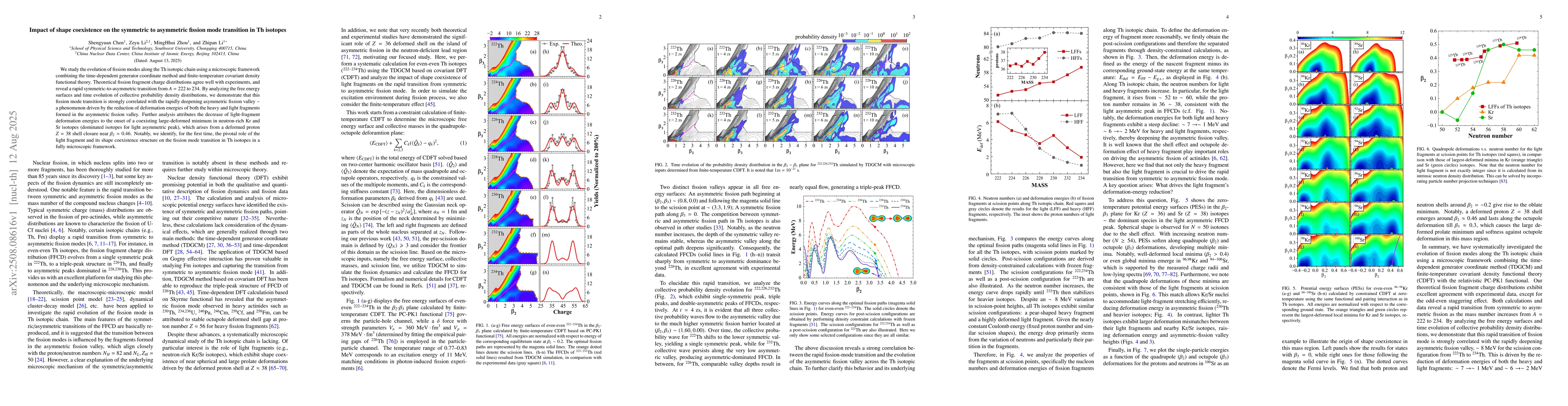 We study the evolution of fission modes along the Th isotopic chain using a microscopic framework combining the time-dependent generator coordinate method and finite-temperature covariant density functional theory. Theoretical fission fragment charge distributions agree well with experiments, and reveal a rapid symmetric-to-asymmetric transition from $A=222$ to 234. By analyzing the free energy surfaces and time evolution of collective probability density distributions, we demonstrate that this fission mode transition is strongly correlated with the rapidly deepening asymmetric fission valley $-$ a phenomenon driven by the reduction of deformation energies of both the heavy and light fragments formed in the asymmetric fission valley. Further analysis attributes the decrease of light-fragment deformation energies to the onset of a coexisting large-deformed minimum in neutron-rich Kr and Sr isotopes (dominated isotopes for light asymmetric peak), which arises from a deformed proton $Z=38$ shell closure near $\beta_2\approx0.46$. Notably, we identify, for the first time, the pivotal role of the light fragment and its shape coexistence structure on the fission mode transition in Th isotopes in a fully microscopic framework.