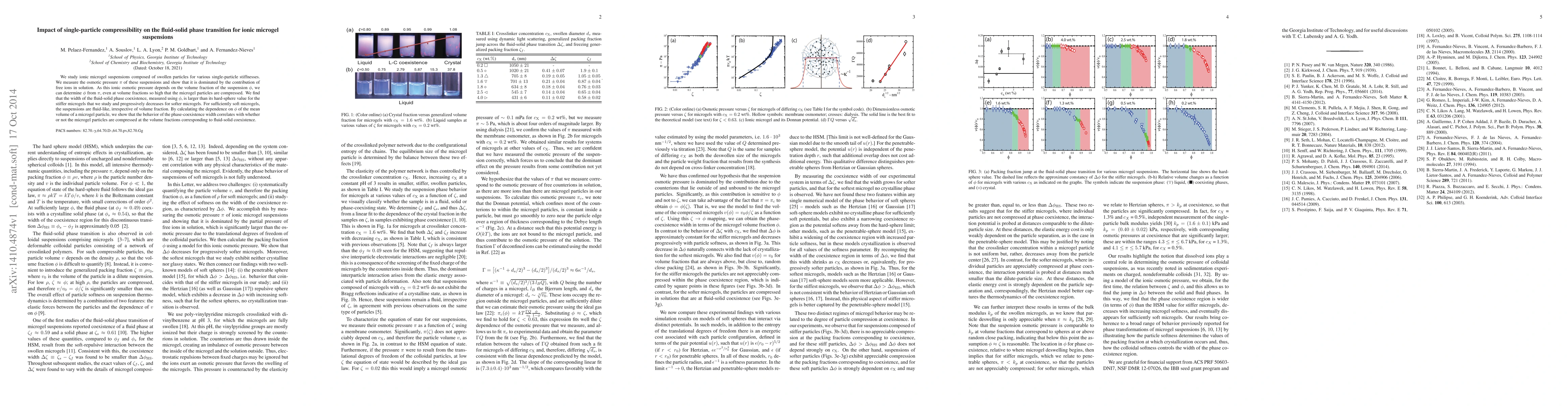 We study ionic microgel suspensions composed of swollen particles for various single-particle stiffnesses. We measure the osmotic pressure $\pi$ of these suspensions and show that it is dominated by the contribution of free ions in solution. As this ionic osmotic pressure depends on the volume fraction of the suspension $\phi$, we can determine $\phi$ from $\pi$, even at volume fractions so high that the microgel particles are compressed. We find that the width of the fluid-solid phase coexistence, measured using $\phi$, is larger than its hard-sphere value for the stiffer microgels that we study and progressively decreases for softer microgels. For sufficiently soft microgels, the suspensions are fluid-like, irrespective of volume fraction. By calculating the dependence on $\phi$ of the mean volume of a microgel particle, we show that the behavior of the phase-coexistence width correlates with whether or not the microgel particles are compressed at the volume fractions corresponding to fluid-solid coexistence.