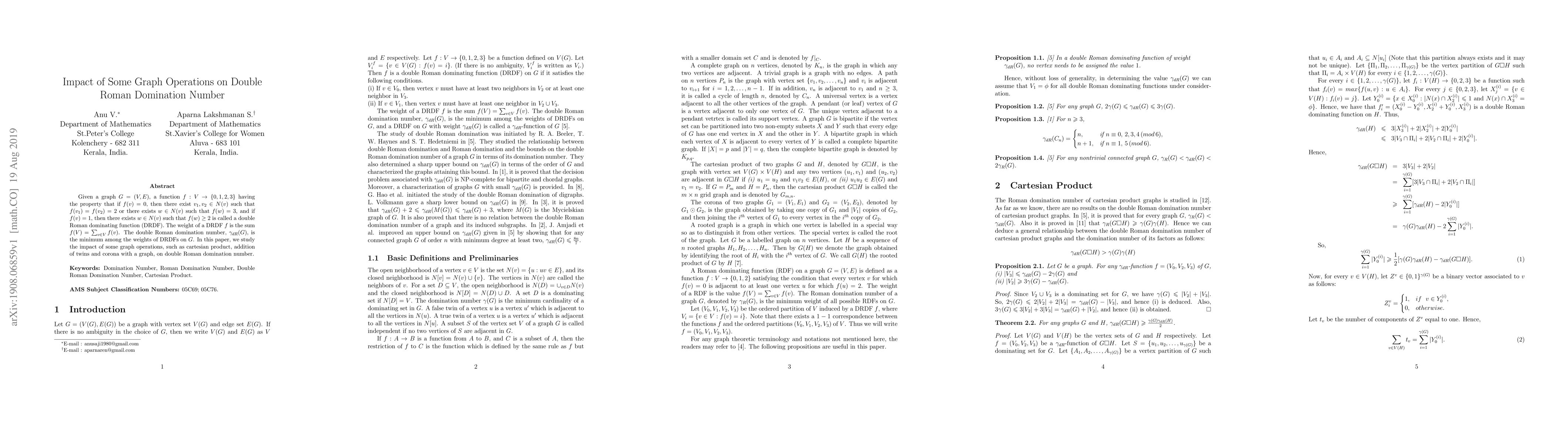 Given a graph $G=(V,E)$, a function $f:V\rightarrow \{0,1,2,3\}$ having the property that if $f(v)=0$, then there exist $ v_{1},v_{2}\in N(v)$ such that $f(v_{1})=f(v_{2})=2$ or there exists $ w \in N(v)$ such that $f(w)=3$, and if $f(v)=1$, then there exists $ w \in N(v)$ such that $f(w)\geq 2$ is called a double Roman dominating function (DRDF). The weight of a DRDF $f$ is the sum $f(V)=\sum_{v\in V}f(v)$. The double Roman domination number, $\gamma_{dR}(G)$, is the minimum among the weights of DRDFs on $G$. In this paper, we study the impact of some graph operations, such as cartesian product, addition of twins and corona with a graph, on double Roman domination number.