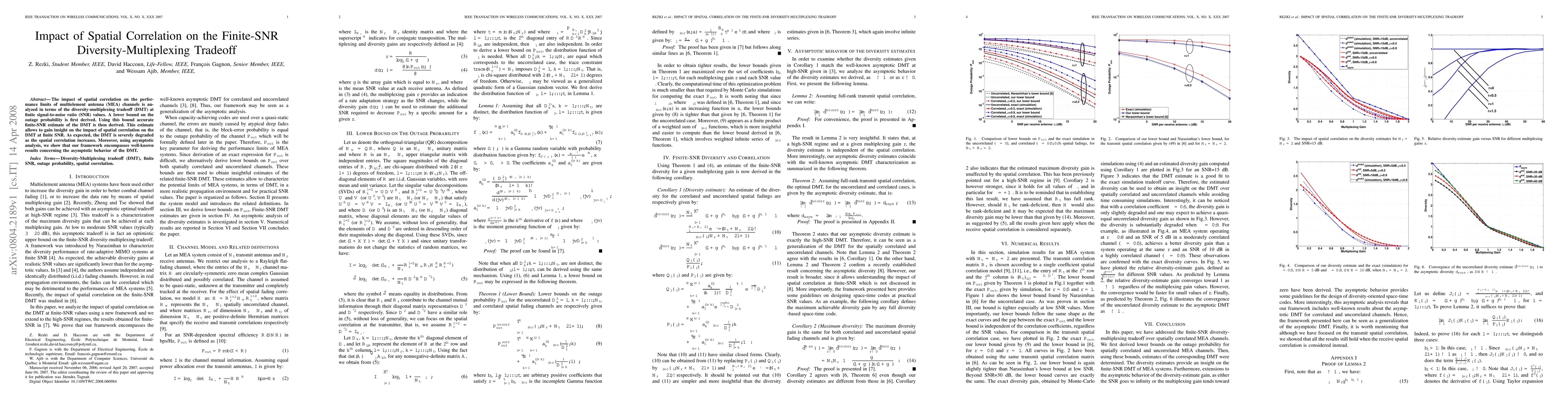 This paper analyzes how spatial correlation affects the diversity-multiplexing tradeoff (DMT) in multielement antenna channels at finite SNR, deriving a lower bound on outage probability and an accurate finite-SNR estimate of the DMT, which reveals that increased spatial correlation severely degrades the DMT.